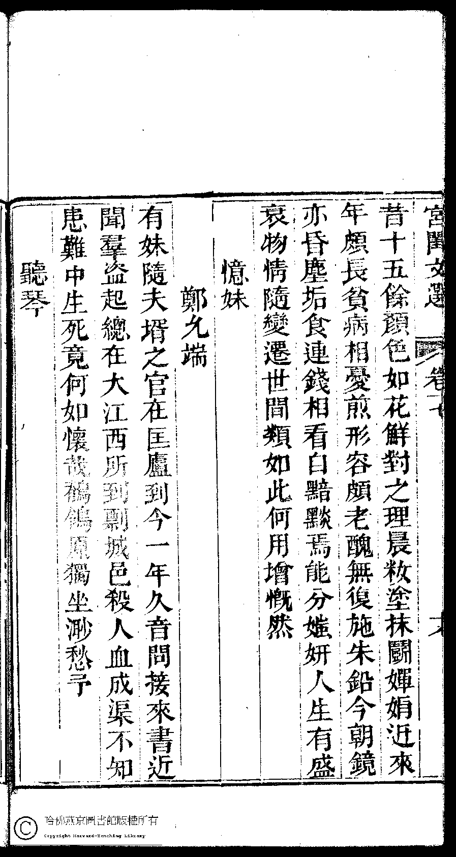 | (PRINT FRIENDLY VERSION) 宮閨文選:二十六卷,姓氏小錄 : 一卷(清周壽昌輯訂)。道光二十六年(1846)開雕 ![]() 頁碼 : 17.19a | 点 击 放 大 | 宮閨文選:二十六卷,姓氏小錄 : 一卷(清周壽昌輯訂)。道光二十六年(1846)開雕![]() 頁碼 : 17.18b | 点 击 放 大 | 返回 |