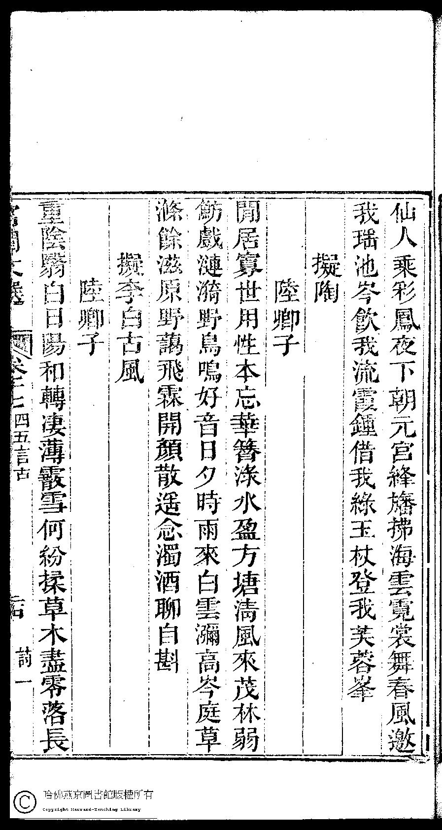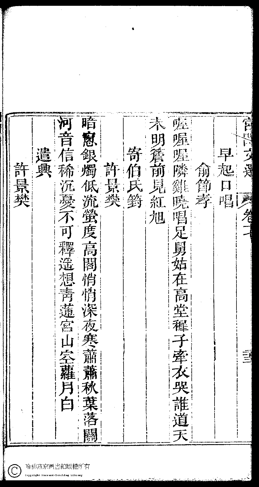 | (PRINT FRIENDLY VERSION) 宮閨文選:二十六卷,姓氏小錄 : 一卷(清周壽昌輯訂)。道光二十六年(1846)開雕 ![]() 頁碼 : 17.24a | 点 击 放 大 | 宮閨文選:二十六卷,姓氏小錄 : 一卷(清周壽昌輯訂)。道光二十六年(1846)開雕![]() 頁碼 : 17.23b | 点 击 放 大 | 返回 |