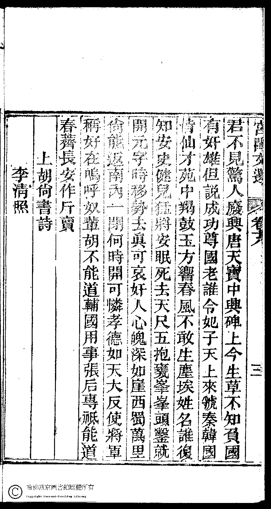 | (PRINT FRIENDLY VERSION) 宮閨文選:二十六卷,姓氏小錄 : 一卷(清周壽昌輯訂)。道光二十六年(1846)開雕 ![]() 頁碼 : 18.4a | 点 击 放 大 | 宮閨文選:二十六卷,姓氏小錄 : 一卷(清周壽昌輯訂)。道光二十六年(1846)開雕![]() 頁碼 : 18.3b | 点 击 放 大 | 返回 |