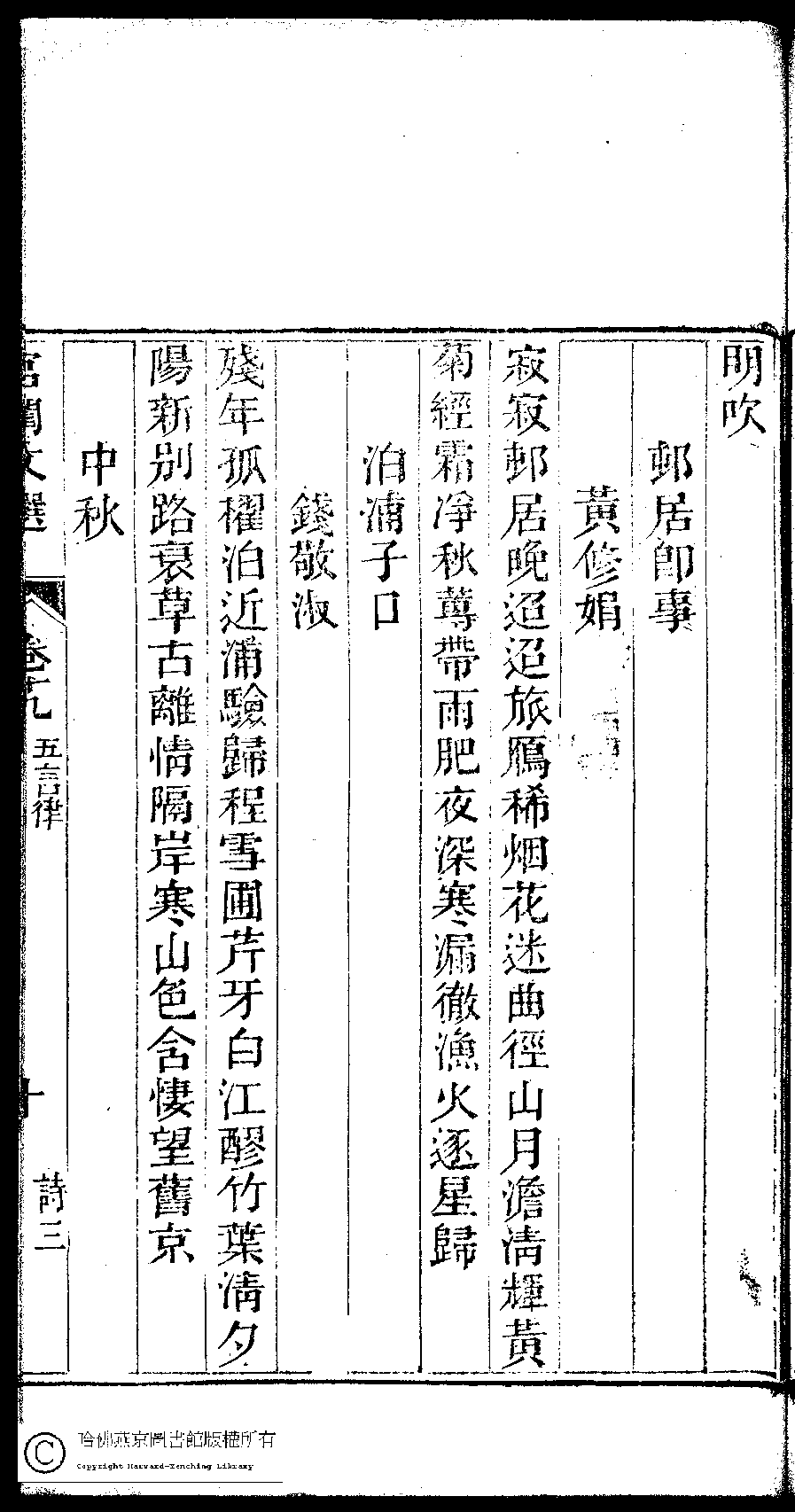 | (PRINT FRIENDLY VERSION) 宮閨文選:二十六卷,姓氏小錄 : 一卷(清周壽昌輯訂)。道光二十六年(1846)開雕 ![]() 頁碼 : 19.10a | 点 击 放 大 | 返回 |