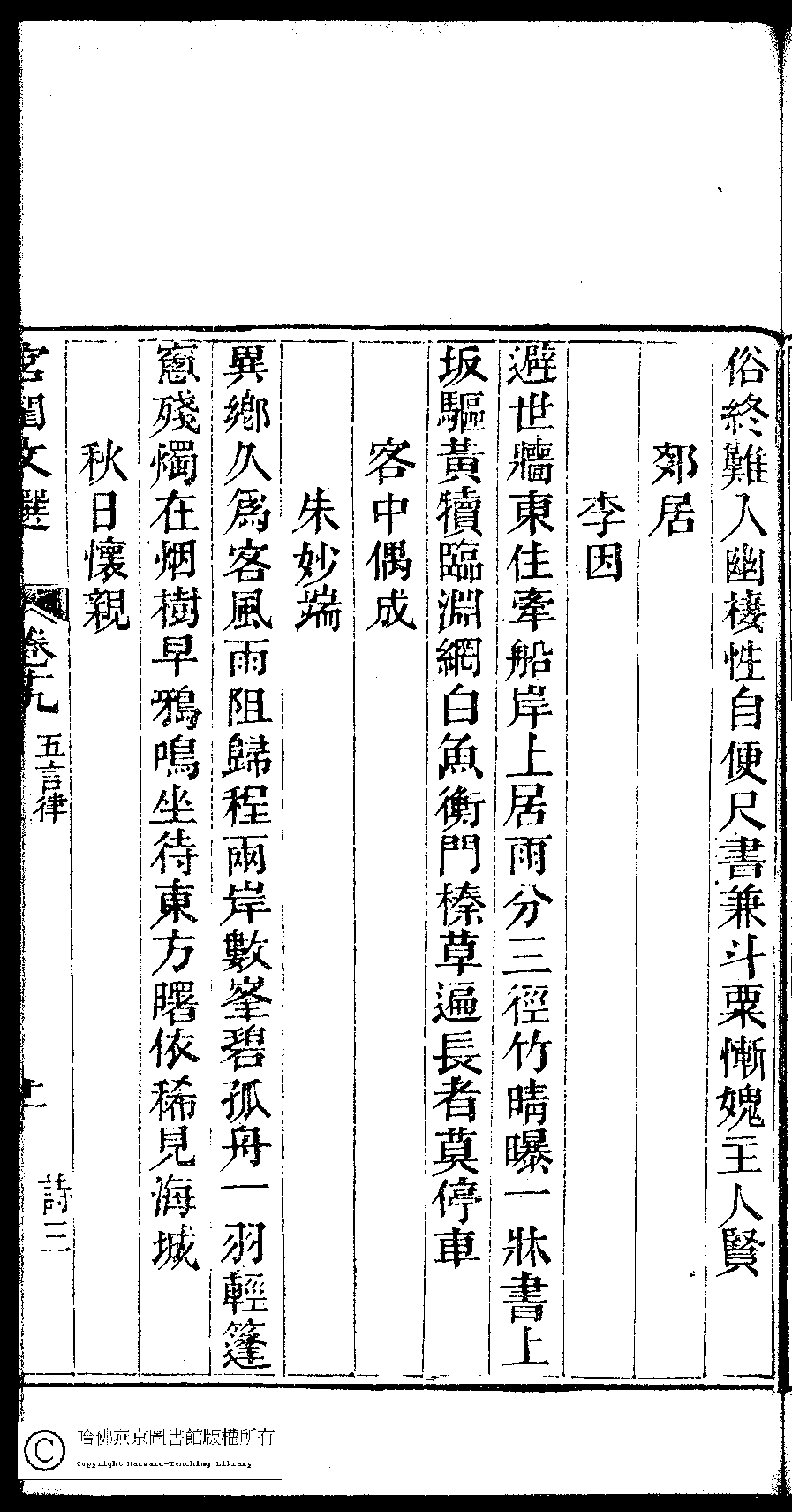 | (PRINT FRIENDLY VERSION) 宮閨文選:二十六卷,姓氏小錄 : 一卷(清周壽昌輯訂)。道光二十六年(1846)開雕 ![]() 頁碼 : 19.11a | 点 击 放 大 | 宮閨文選:二十六卷,姓氏小錄 : 一卷(清周壽昌輯訂)。道光二十六年(1846)開雕![]() 頁碼 : 19.10b | 点 击 放 大 | 返回 |