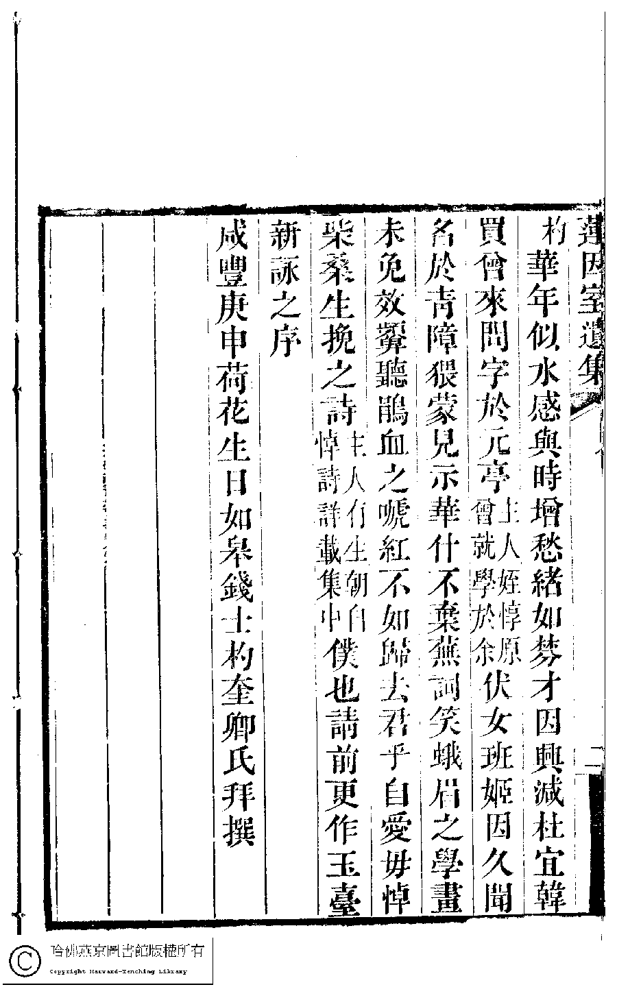 | (PRINT FRIENDLY VERSION) 蓮因室詩集﹕二卷﹐詞集﹕一卷(清鄭蘭孫撰)。清光緒元年(1875)刻本 ![]() 頁碼 : 序.2b | 点 击 放 大 | 蓮因室詩集﹕二卷﹐詞集﹕一卷(清鄭蘭孫撰)。清光緒元年(1875)刻本![]() 頁碼 : 序.2a | 点 击 放 大 | 蓮因室詩集﹕二卷﹐詞集﹕一卷(清鄭蘭孫撰)。清光緒元年(1875)刻本![]() 頁碼 : 序.1b | 点 击 放 大 | 蓮因室詩集﹕二卷﹐詞集﹕一卷(清鄭蘭孫撰)。清光緒元年(1875)刻本![]() 頁碼 : 序.1a | 点 击 放 大 | 返回 |