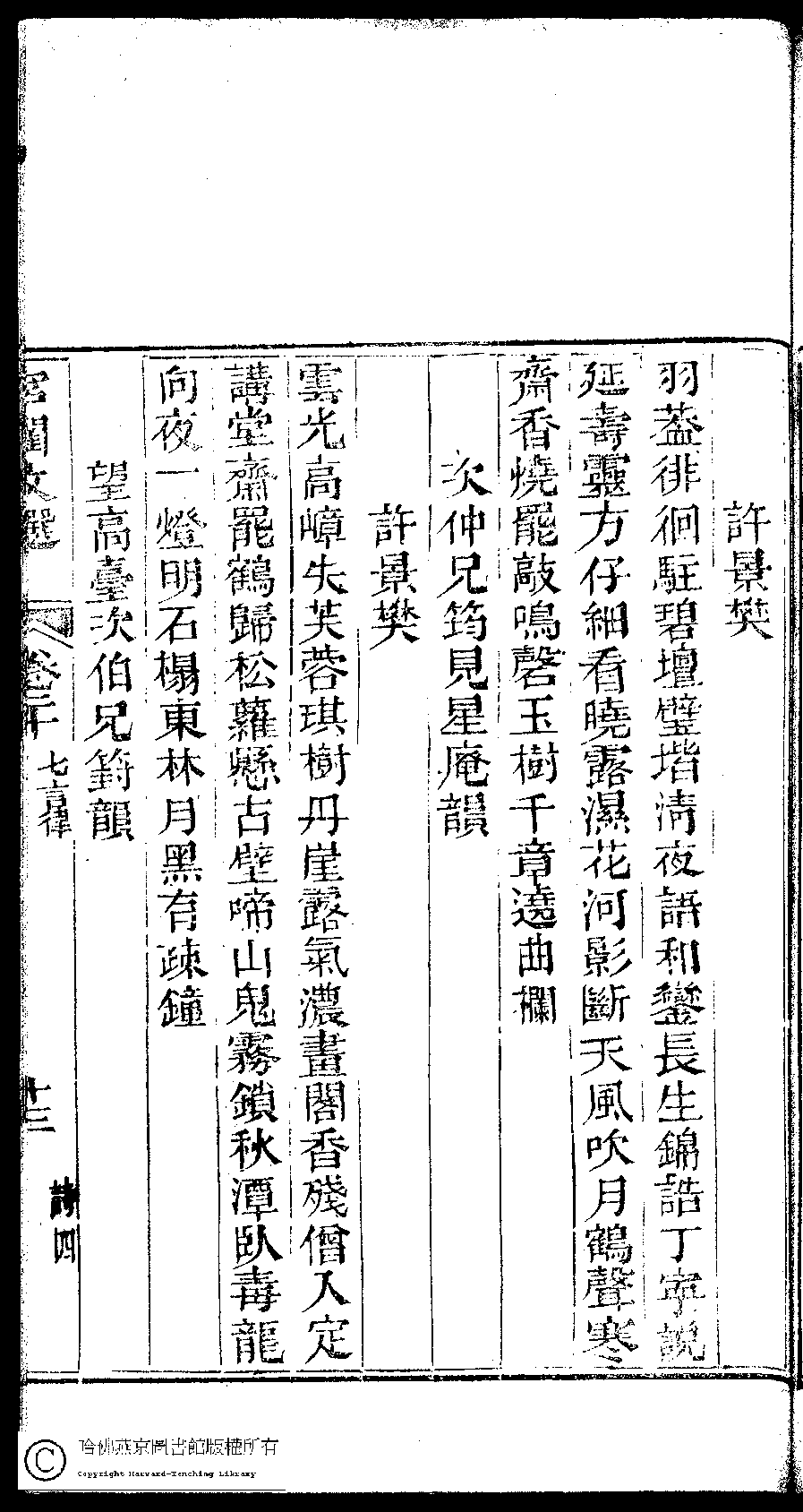 | (PRINT FRIENDLY VERSION) 宮閨文選:二十六卷,姓氏小錄 : 一卷(清周壽昌輯訂)。道光二十六年(1846)開雕 ![]() 頁碼 : 20.13b | 点 击 放 大 | 宮閨文選:二十六卷,姓氏小錄 : 一卷(清周壽昌輯訂)。道光二十六年(1846)開雕![]() 頁碼 : 20.13a | 点 击 放 大 | 返回 |