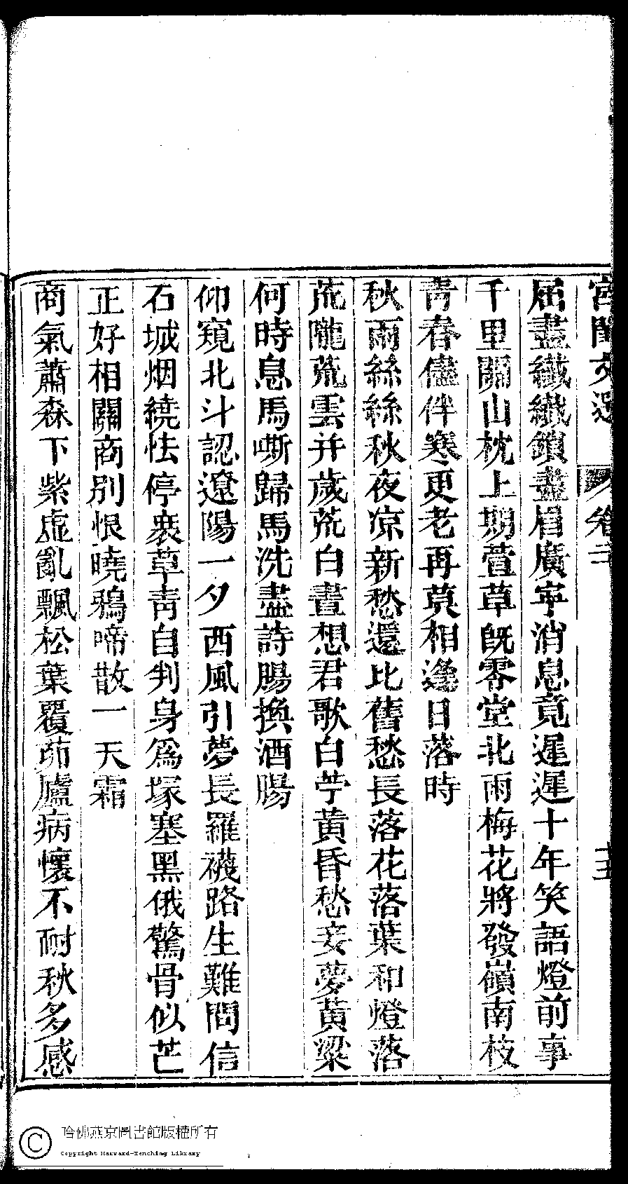 | (PRINT FRIENDLY VERSION) 宮閨文選:二十六卷,姓氏小錄 : 一卷(清周壽昌輯訂)。道光二十六年(1846)開雕 ![]() 頁碼 : 20.16a | 点 击 放 大 | 宮閨文選:二十六卷,姓氏小錄 : 一卷(清周壽昌輯訂)。道光二十六年(1846)開雕![]() 頁碼 : 20.15b | 点 击 放 大 | 宮閨文選:二十六卷,姓氏小錄 : 一卷(清周壽昌輯訂)。道光二十六年(1846)開雕![]() 頁碼 : 20.15a | 点 击 放 大 | 返回 |