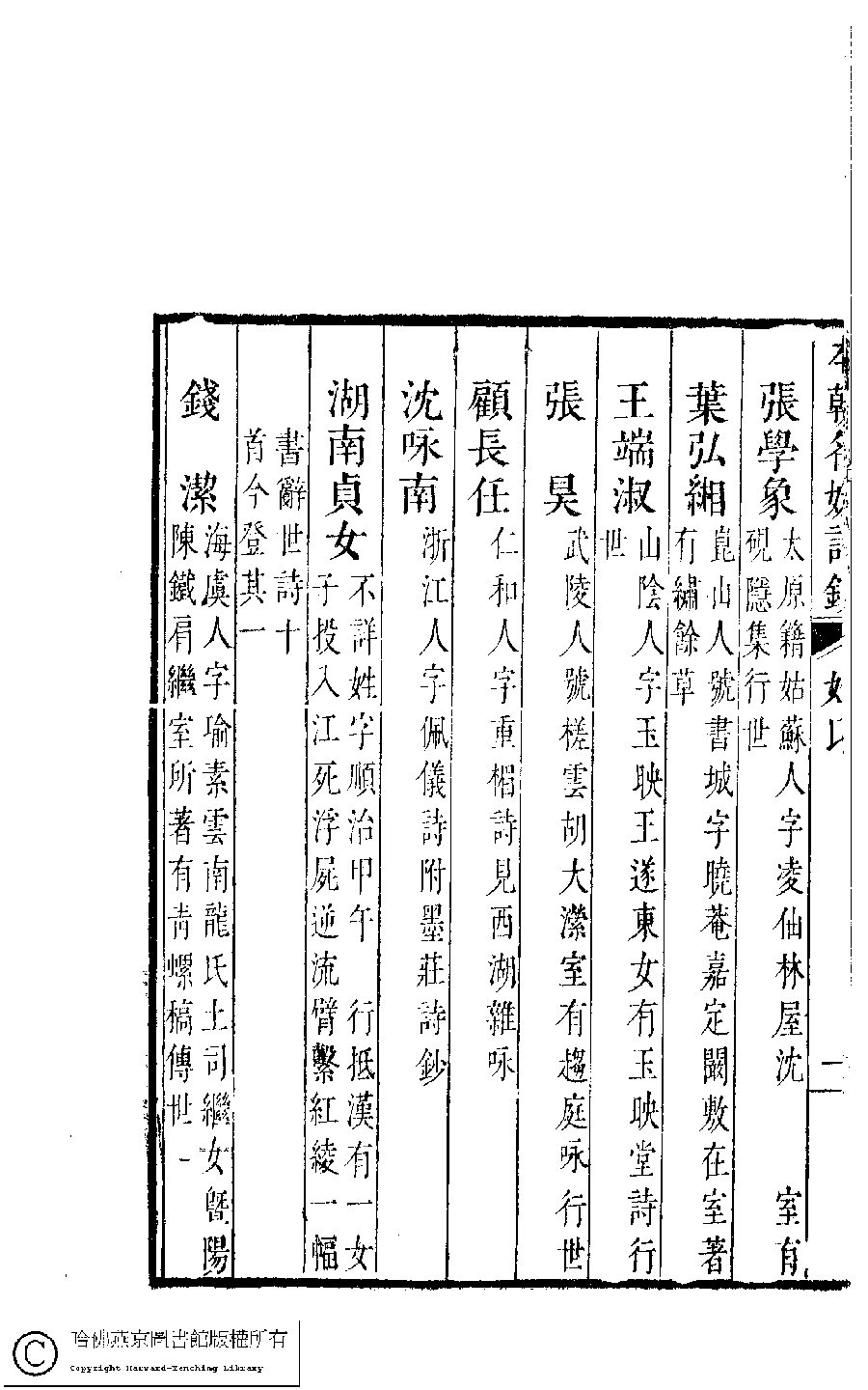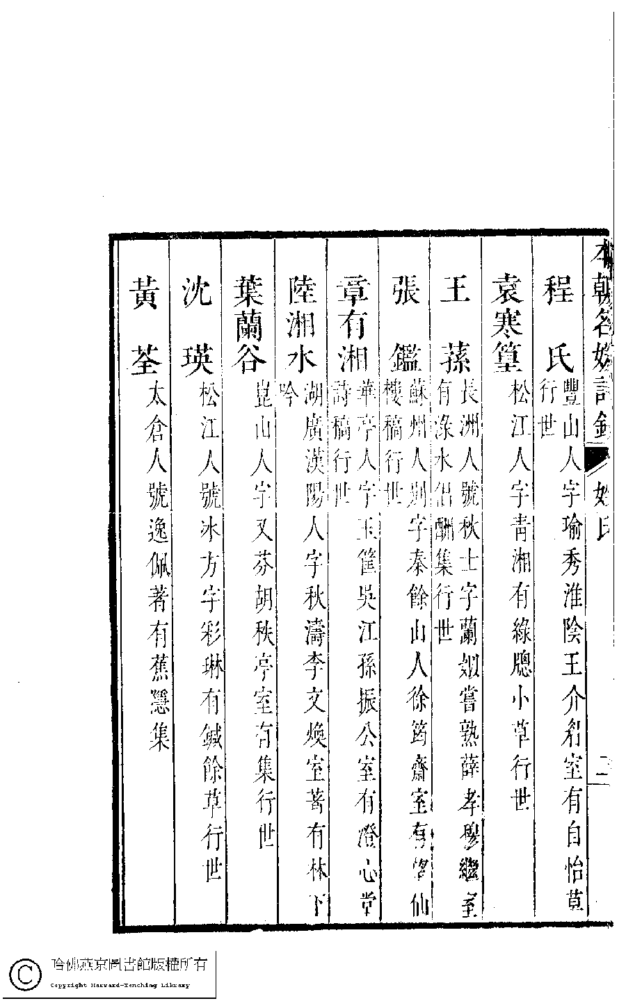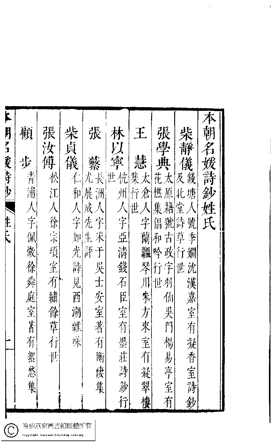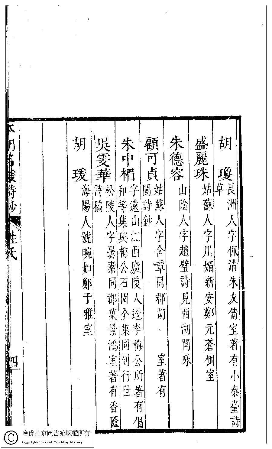 | 原書: 本朝名媛詩鈔﹕六卷(清胡孝思輯) |