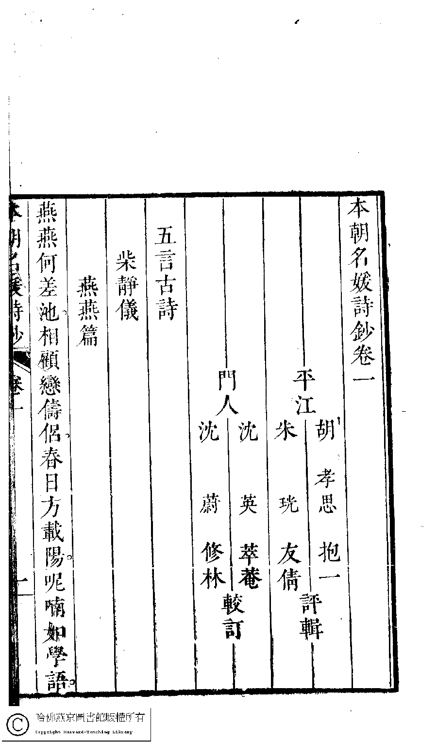 | 原書: 本朝名媛詩鈔﹕六卷(清胡孝思輯) |