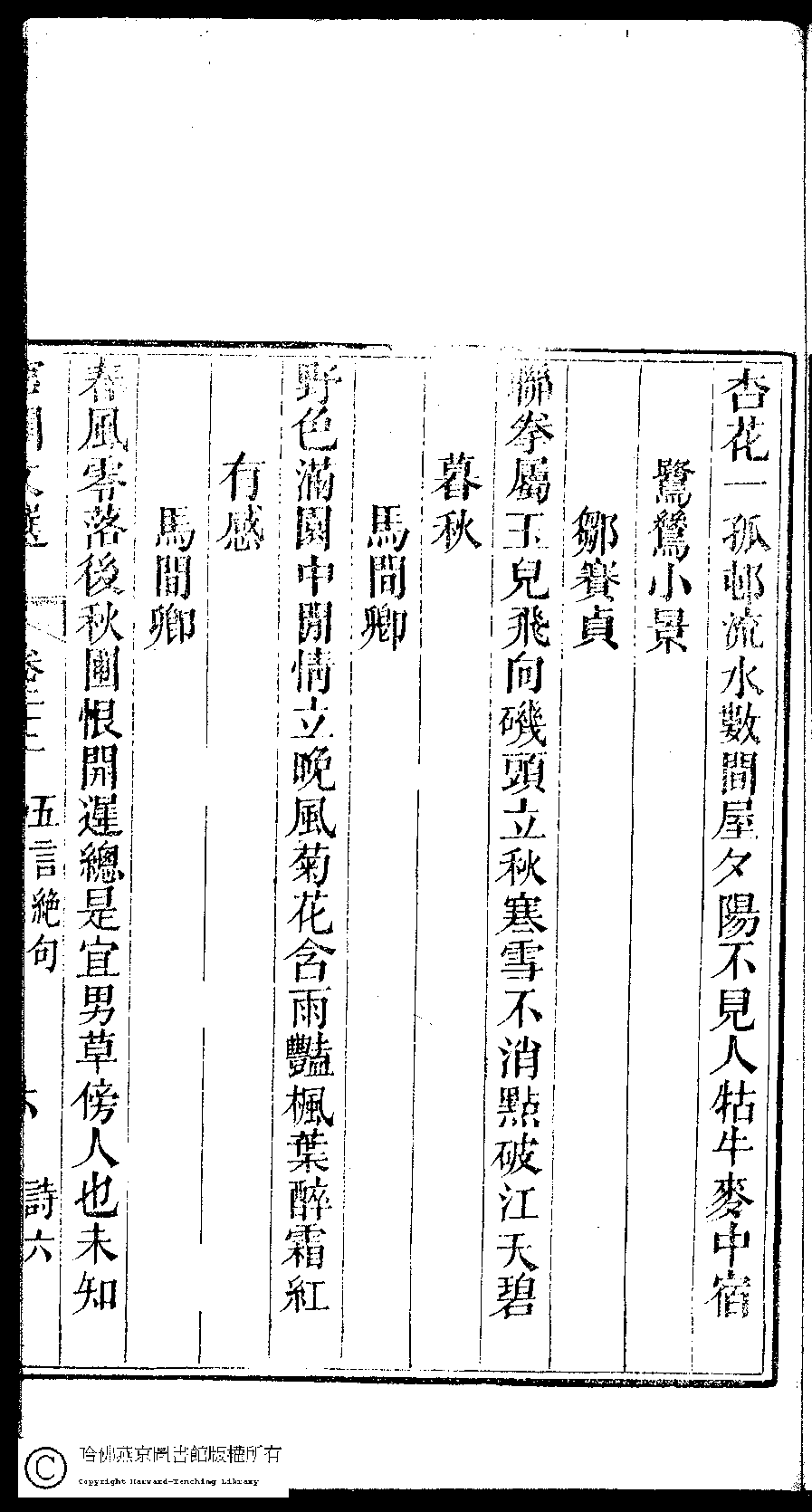 | (PRINT FRIENDLY VERSION) 宮閨文選:二十六卷,姓氏小錄 : 一卷(清周壽昌輯訂)。道光二十六年(1846)開雕 ![]() 頁碼 : 22.6a | 点 击 放 大 | 返回 |