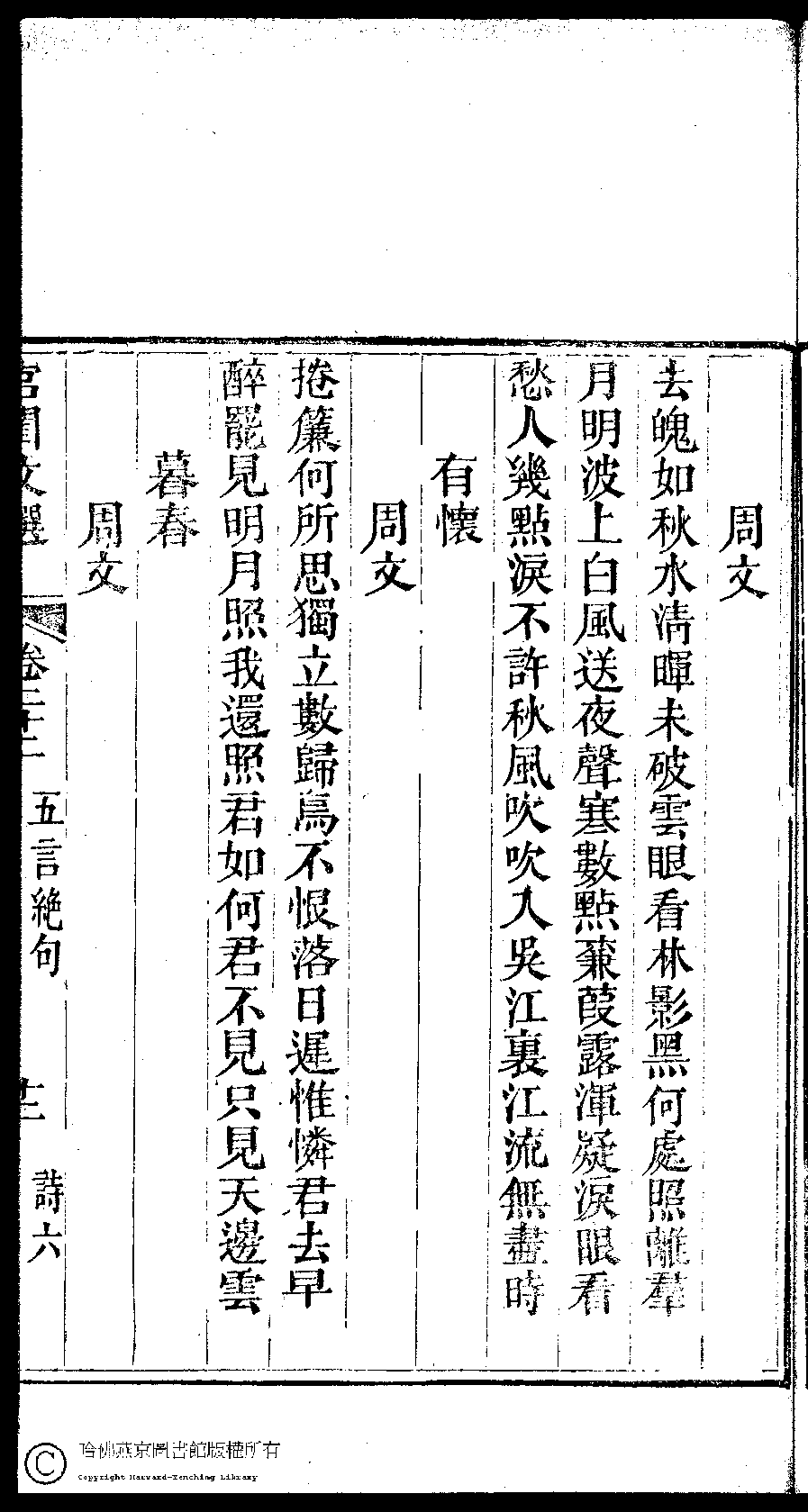 | (PRINT FRIENDLY VERSION) 宮閨文選:二十六卷,姓氏小錄 : 一卷(清周壽昌輯訂)。道光二十六年(1846)開雕 ![]() 頁碼 : 22.12a | 点 击 放 大 | 返回 |
