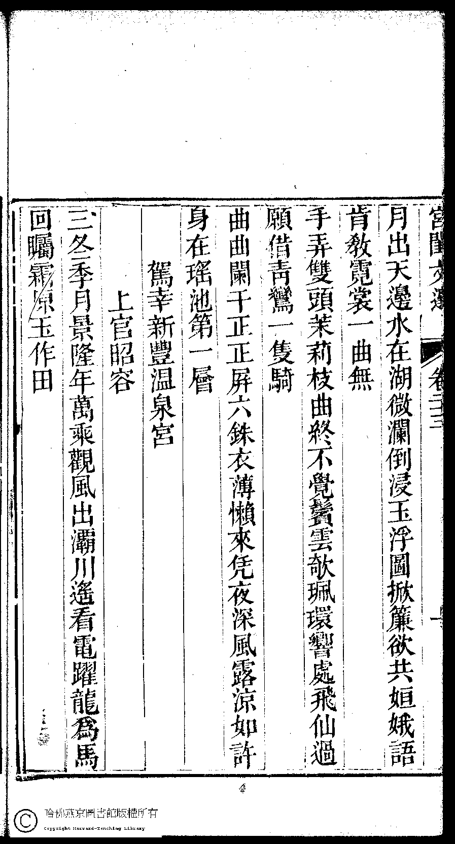 | (PRINT FRIENDLY VERSION) 宮閨文選:二十六卷,姓氏小錄 : 一卷(清周壽昌輯訂)。道光二十六年(1846)開雕 ![]() 頁碼 : 23.2a | 点 击 放 大 | 宮閨文選:二十六卷,姓氏小錄 : 一卷(清周壽昌輯訂)。道光二十六年(1846)開雕![]() 頁碼 : 23.1b | 点 击 放 大 | 返回 |