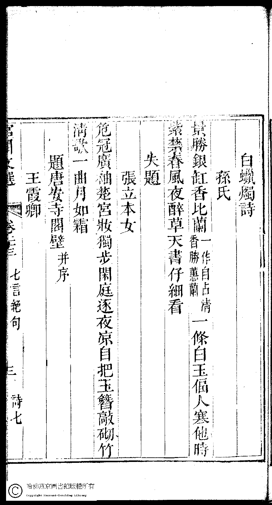 | (PRINT FRIENDLY VERSION) 宮閨文選:二十六卷,姓氏小錄 : 一卷(清周壽昌輯訂)。道光二十六年(1846)開雕 ![]() 頁碼 : 23.3b | 点 击 放 大 | 宮閨文選:二十六卷,姓氏小錄 : 一卷(清周壽昌輯訂)。道光二十六年(1846)開雕![]() 頁碼 : 23.3a | 点 击 放 大 | 返回 |