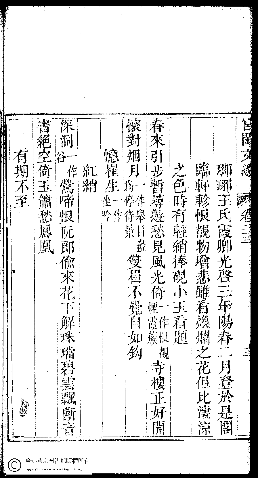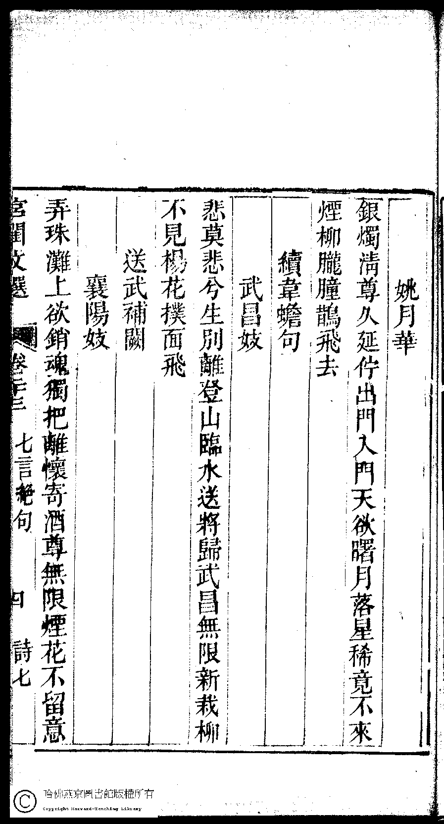 | (PRINT FRIENDLY VERSION) 宮閨文選:二十六卷,姓氏小錄 : 一卷(清周壽昌輯訂)。道光二十六年(1846)開雕 ![]() 頁碼 : 23.4a | 点 击 放 大 | 宮閨文選:二十六卷,姓氏小錄 : 一卷(清周壽昌輯訂)。道光二十六年(1846)開雕![]() 頁碼 : 23.3b | 点 击 放 大 | 返回 |