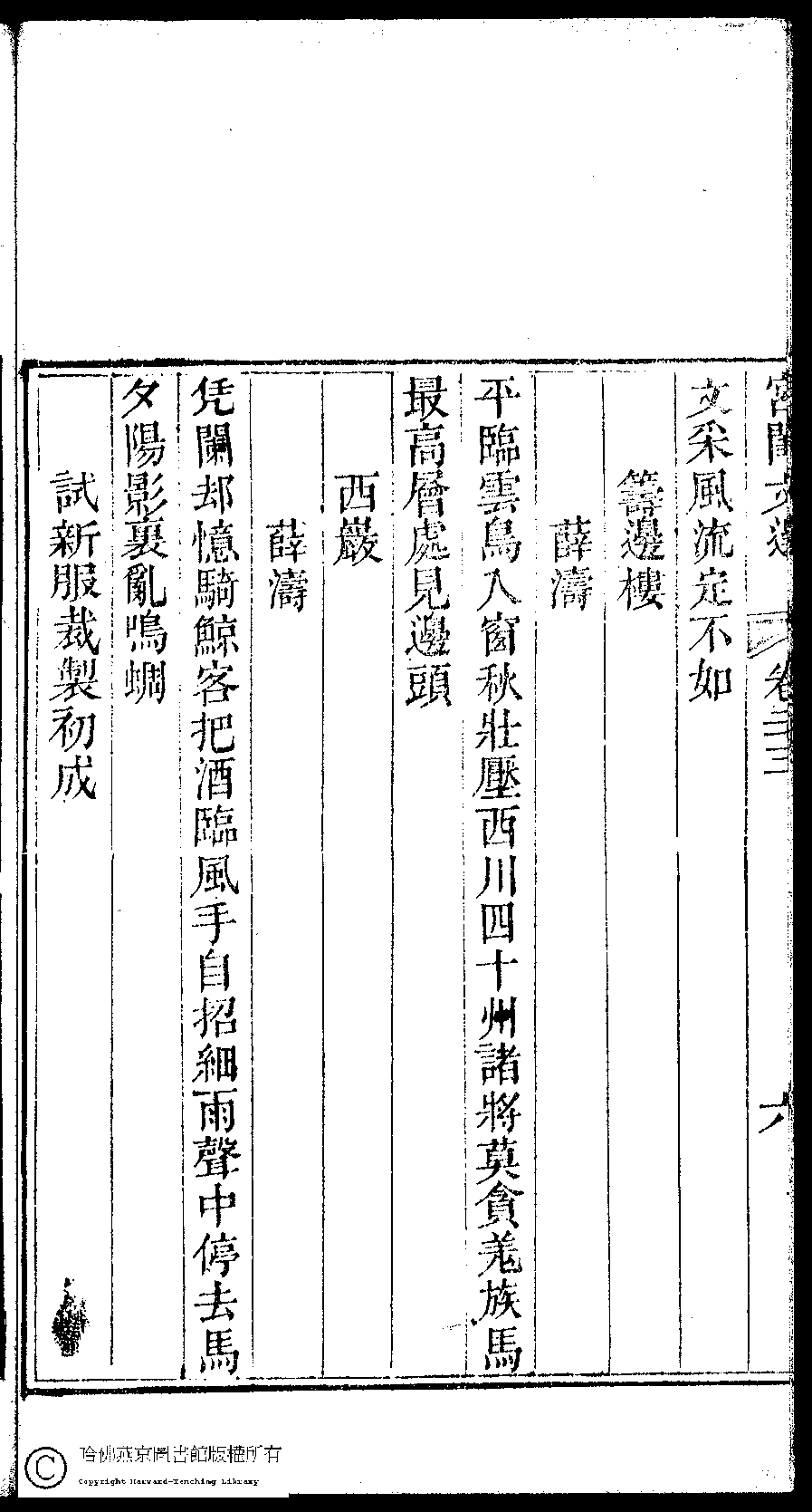| (PRINT FRIENDLY VERSION) 宮閨文選:二十六卷,姓氏小錄 : 一卷(清周壽昌輯訂)。道光二十六年(1846)開雕 ![]() 頁碼 : 23.6b | 点 击 放 大 | 返回 |