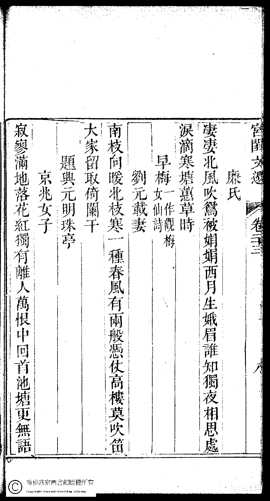 | (PRINT FRIENDLY VERSION) 宮閨文選:二十六卷,姓氏小錄 : 一卷(清周壽昌輯訂)。道光二十六年(1846)開雕 ![]() 頁碼 : 23.8b | 点 击 放 大 | 宮閨文選:二十六卷,姓氏小錄 : 一卷(清周壽昌輯訂)。道光二十六年(1846)開雕![]() 頁碼 : 23.8a | 点 击 放 大 | 返回 |
