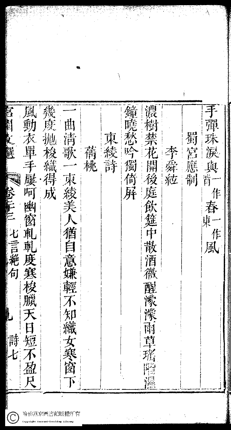 | (PRINT FRIENDLY VERSION) 宮閨文選:二十六卷,姓氏小錄 : 一卷(清周壽昌輯訂)。道光二十六年(1846)開雕 ![]() 頁碼 : 23.9a | 点 击 放 大 | 返回 |