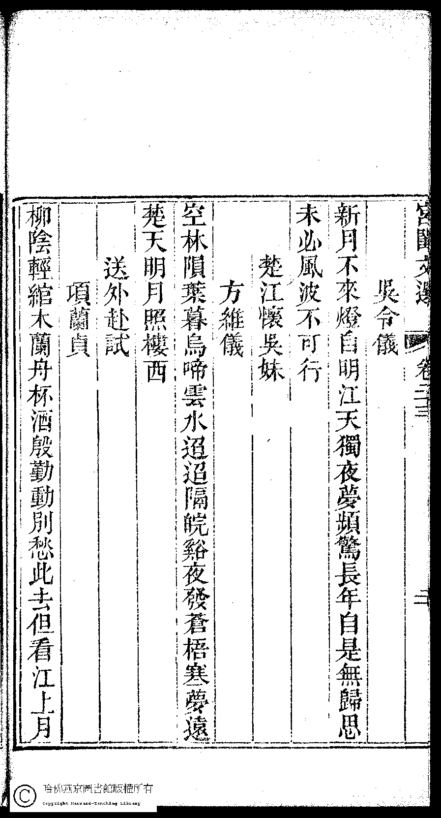| (PRINT FRIENDLY VERSION) 宮閨文選:二十六卷,姓氏小錄 : 一卷(清周壽昌輯訂)。道光二十六年(1846)開雕 ![]() 頁碼 : 23.20b | 点 击 放 大 | 返回 |
