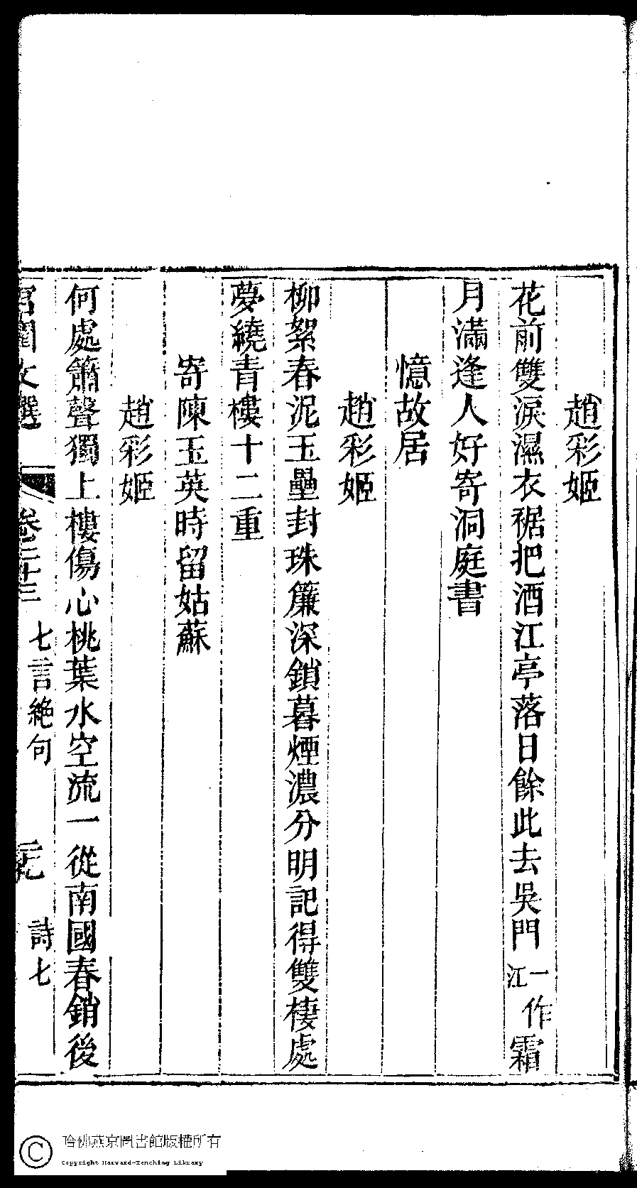 | (PRINT FRIENDLY VERSION) 宮閨文選:二十六卷,姓氏小錄 : 一卷(清周壽昌輯訂)。道光二十六年(1846)開雕 ![]() 頁碼 : 23.29a | 点 击 放 大 | 返回 |