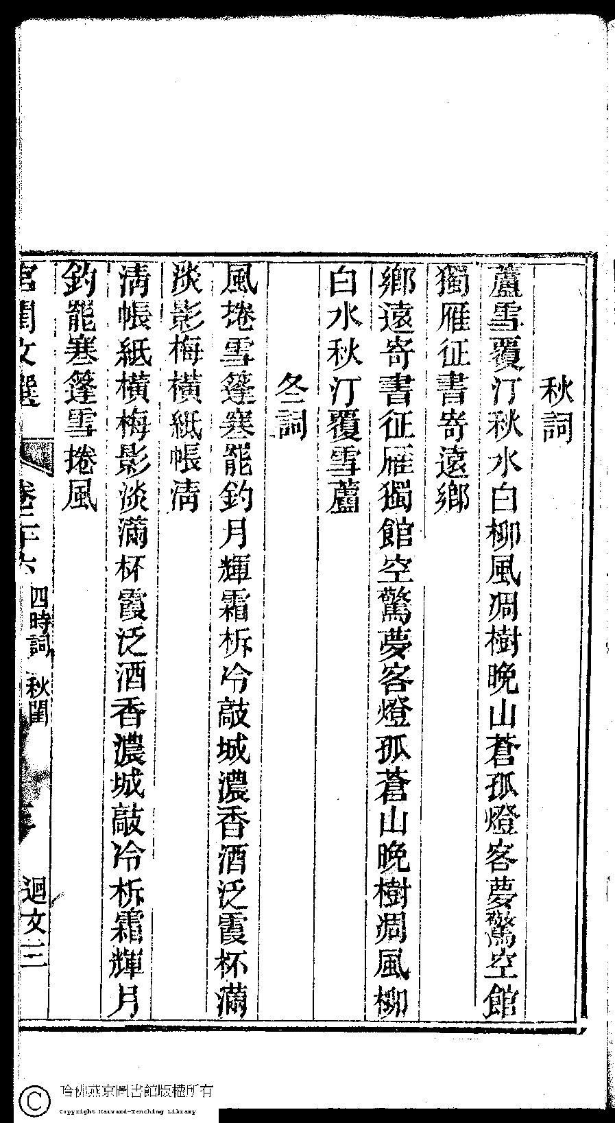 | (PRINT FRIENDLY VERSION) 宮閨文選:二十六卷,姓氏小錄 : 一卷(清周壽昌輯訂)。道光二十六年(1846)開雕 ![]() 頁碼 : 26.3a | 点 击 放 大 | 返回 |