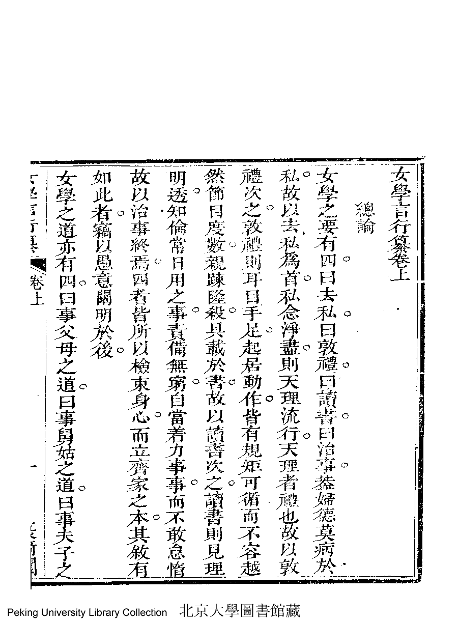 女學言行纂﹕三卷(清李晚芳撰)。乾隆五十二年丁未(1787)謐園藏版