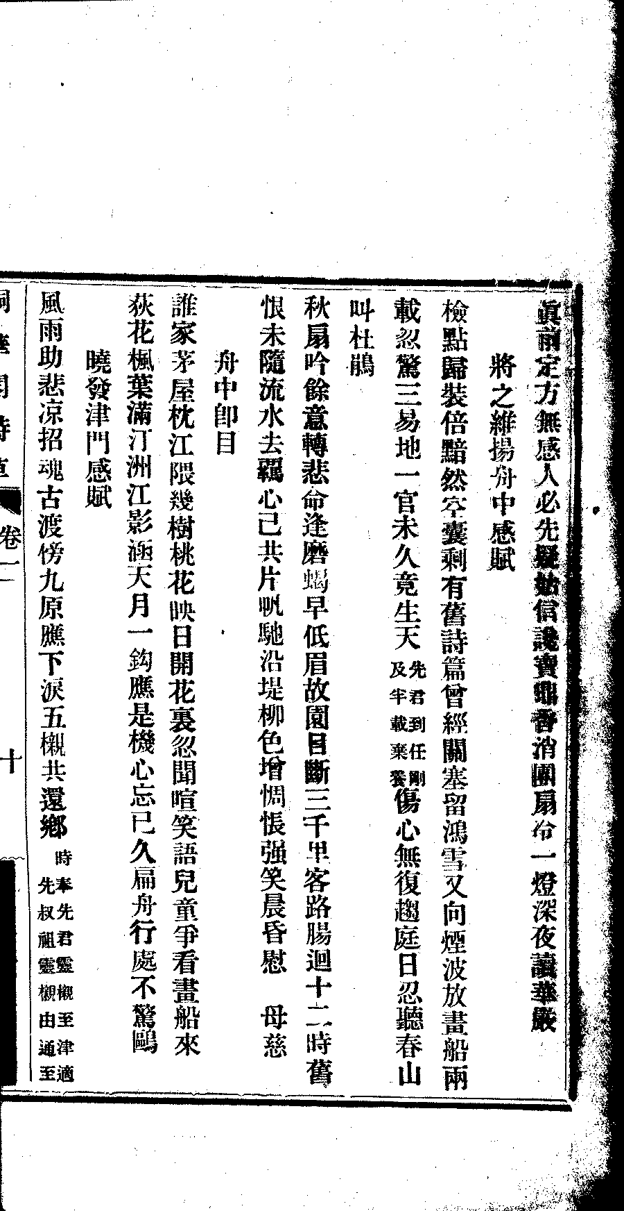 | (PRINT FRIENDLY VERSION) 桐華閣詩集:詩草三卷,詩餘一卷(清慶鳳暉撰)。民國初年(1912)刊本 ![]() 頁碼 : 2.10a | 点 击 放 大 | 桐華閣詩集:詩草三卷,詩餘一卷(清慶鳳暉撰)。民國初年(1912)刊本![]() 頁碼 : 2.9b | 点 击 放 大 | 返回 |