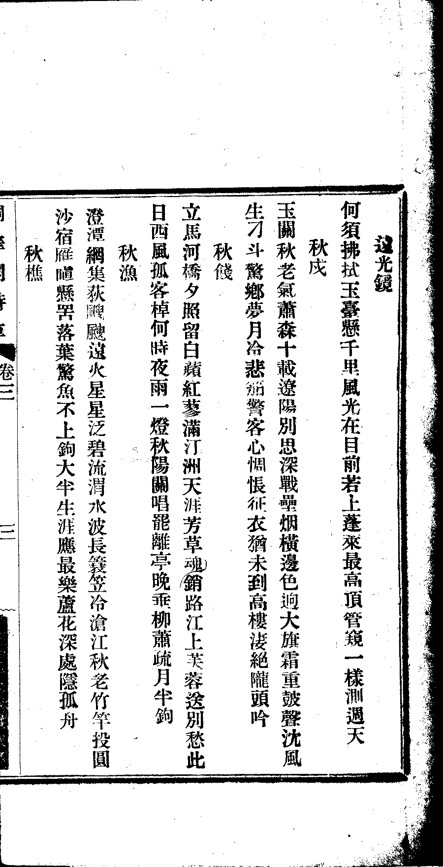 | (PRINT FRIENDLY VERSION) 桐華閣詩集:詩草三卷,詩餘一卷(清慶鳳暉撰)。民國初年(1912)刊本 ![]() 頁碼 : 3.3a | 点 击 放 大 | 返回 |
