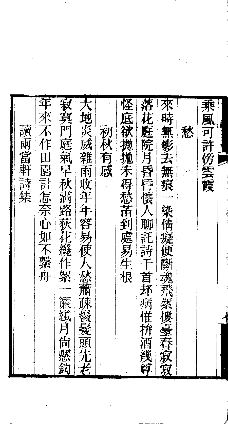 | (PRINT FRIENDLY VERSION) 海棠春曉樓吟草(清武淑儀撰)。清光緒二十三年(1897)刻本 ![]() 頁碼 : 1.7b | 点 击 放 大 | 返回 |