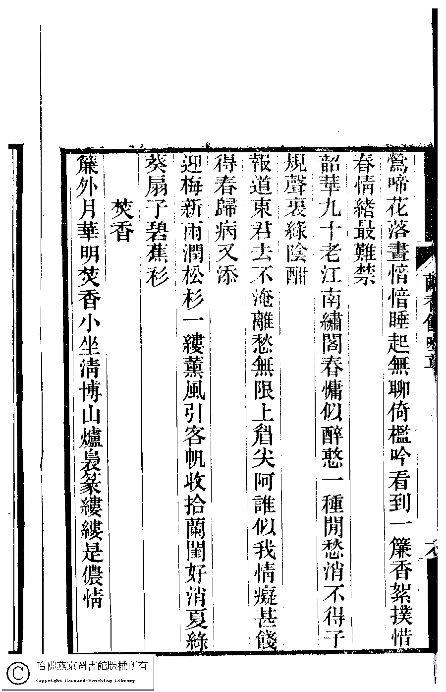 | 原書: 夢湘樓詩稿﹕二卷﹐詞稿﹕一卷﹔繭香館吟艸﹕一卷﹐繡餘詞草﹕一卷(清宗婉等撰): 繭香館吟艸﹕一卷 |