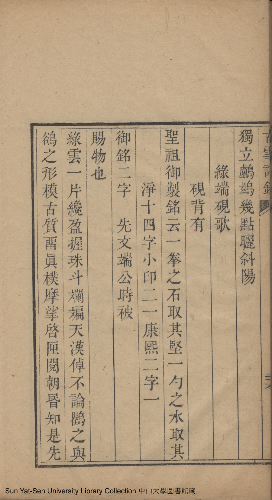 | (PRINT FRIENDLY VERSION) 古雪詩鈔:一卷, 續鈔: 一卷, 詩餘:一卷(清楊繼端撰)。清嘉慶十四年(1809)刻本 ![]() 頁碼 : 1.詩鈔.27a | 点 击 放 大 | 古雪詩鈔:一卷, 續鈔: 一卷, 詩餘:一卷(清楊繼端撰)。清嘉慶十四年(1809)刻本![]() 頁碼 : 1.詩鈔.26b | 点 击 放 大 | 返回 |