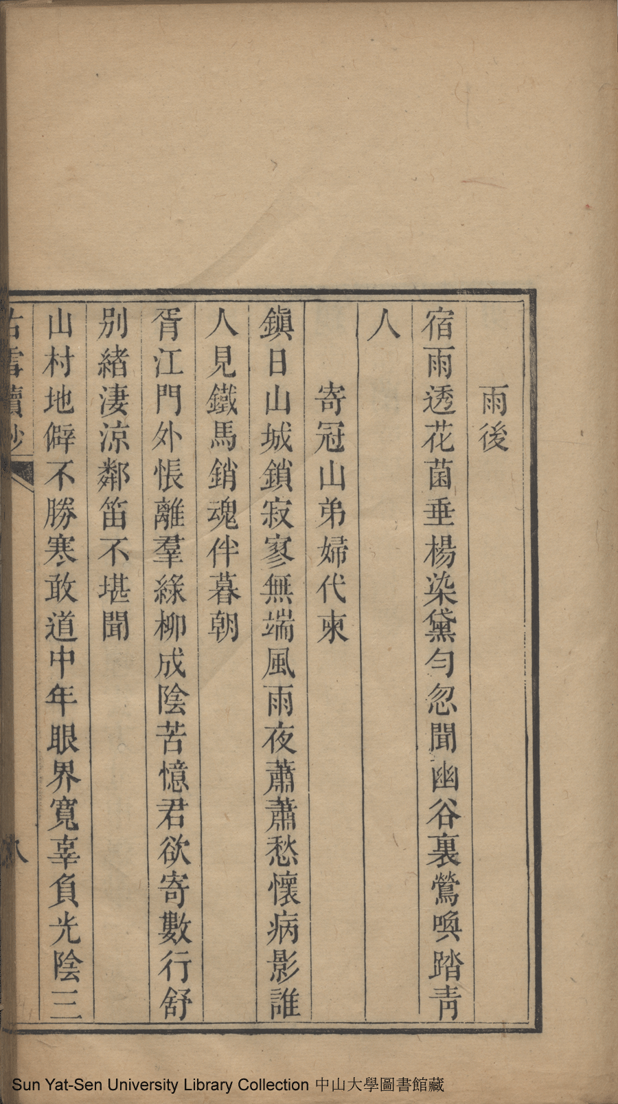 | 原書: 古雪詩鈔:一卷, 續鈔: 一卷, 詩餘:一卷(清楊繼端撰) |