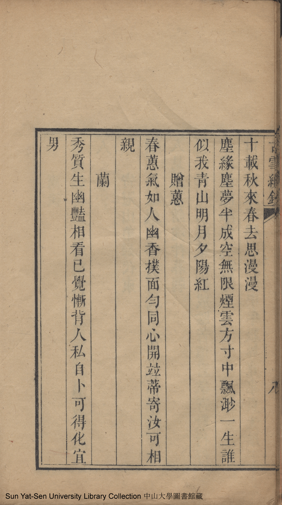 | (PRINT FRIENDLY VERSION) 古雪詩鈔:一卷, 續鈔: 一卷, 詩餘:一卷(清楊繼端撰)。清嘉慶十四年(1809)刻本 ![]() 頁碼 : 2.續鈔.8b | 点 击 放 大 | 古雪詩鈔:一卷, 續鈔: 一卷, 詩餘:一卷(清楊繼端撰)。清嘉慶十四年(1809)刻本![]() 頁碼 : 2.續鈔.8a | 点 击 放 大 | 返回 |
