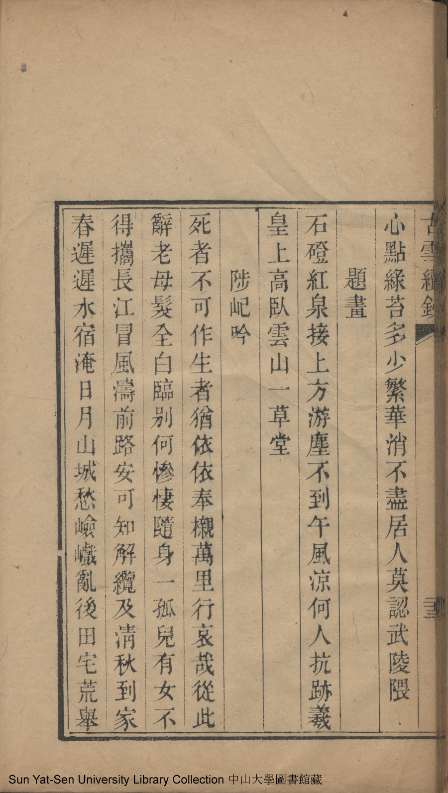 | 原書: 古雪詩鈔:一卷, 續鈔: 一卷, 詩餘:一卷(清楊繼端撰) |