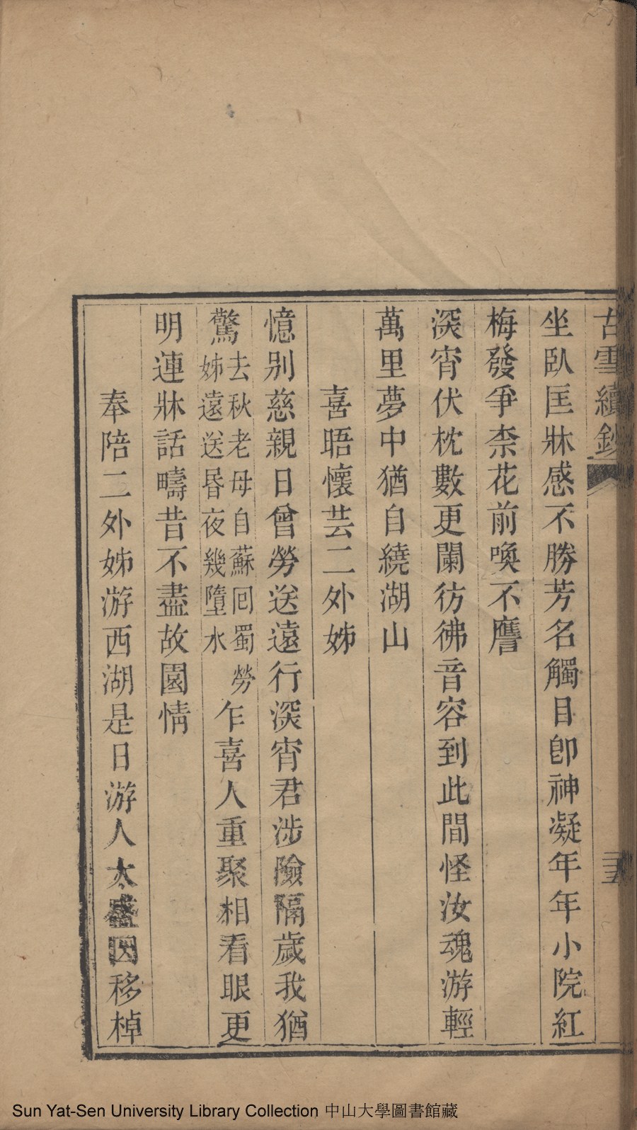 | 原書: 古雪詩鈔:一卷, 續鈔: 一卷, 詩餘:一卷(清楊繼端撰) |
