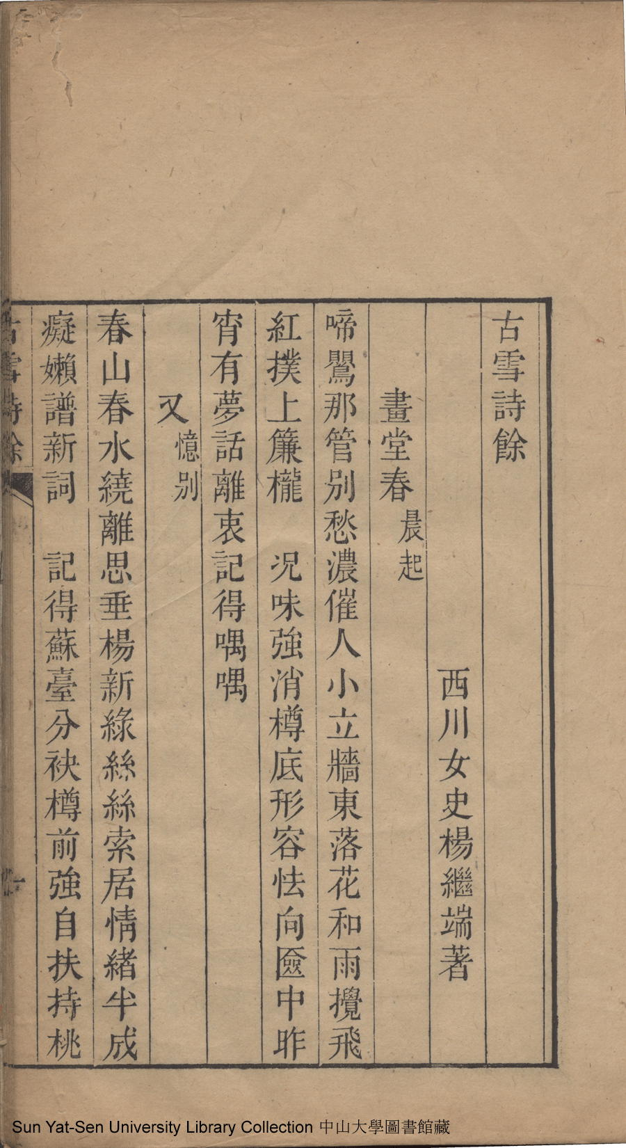 | 原書: 古雪詩鈔:一卷, 續鈔: 一卷, 詩餘:一卷(清楊繼端撰) |