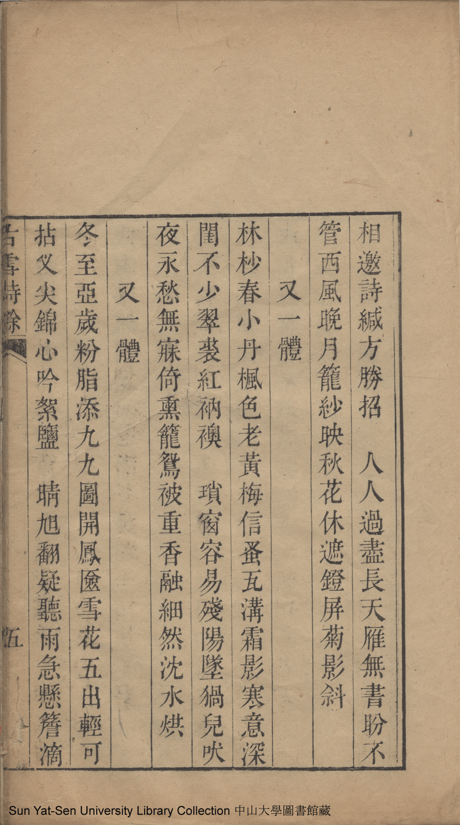 | (PRINT FRIENDLY VERSION) 古雪詩鈔:一卷, 續鈔: 一卷, 詩餘:一卷(清楊繼端撰)。清嘉慶十四年(1809)刻本 ![]() 頁碼 : 3.詩餘.5b | 点 击 放 大 | 古雪詩鈔:一卷, 續鈔: 一卷, 詩餘:一卷(清楊繼端撰)。清嘉慶十四年(1809)刻本![]() 頁碼 : 3.詩餘.5a | 点 击 放 大 | 返回 |
