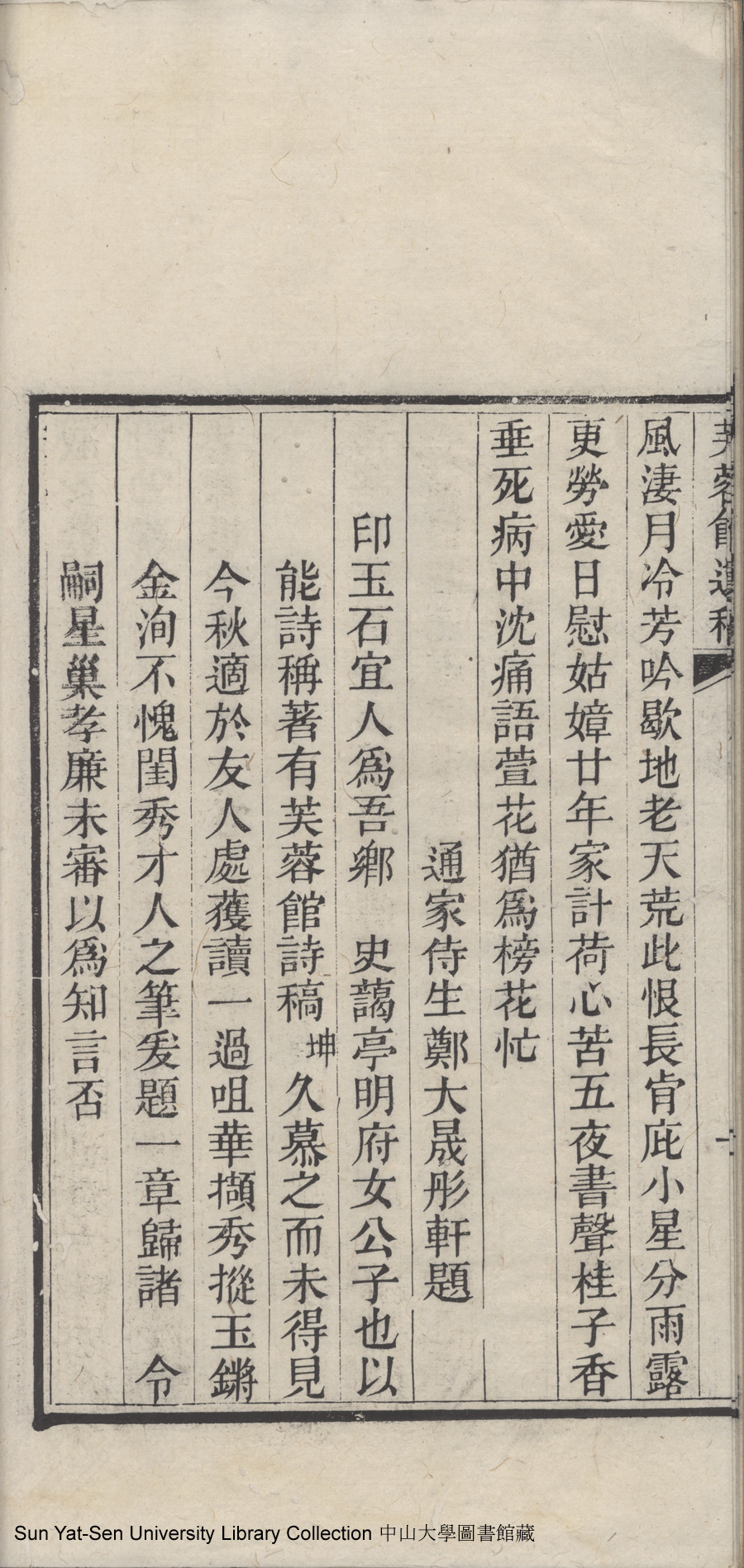 | 原書: 芙蓉館遺稿:一卷(清史印玉撰) |