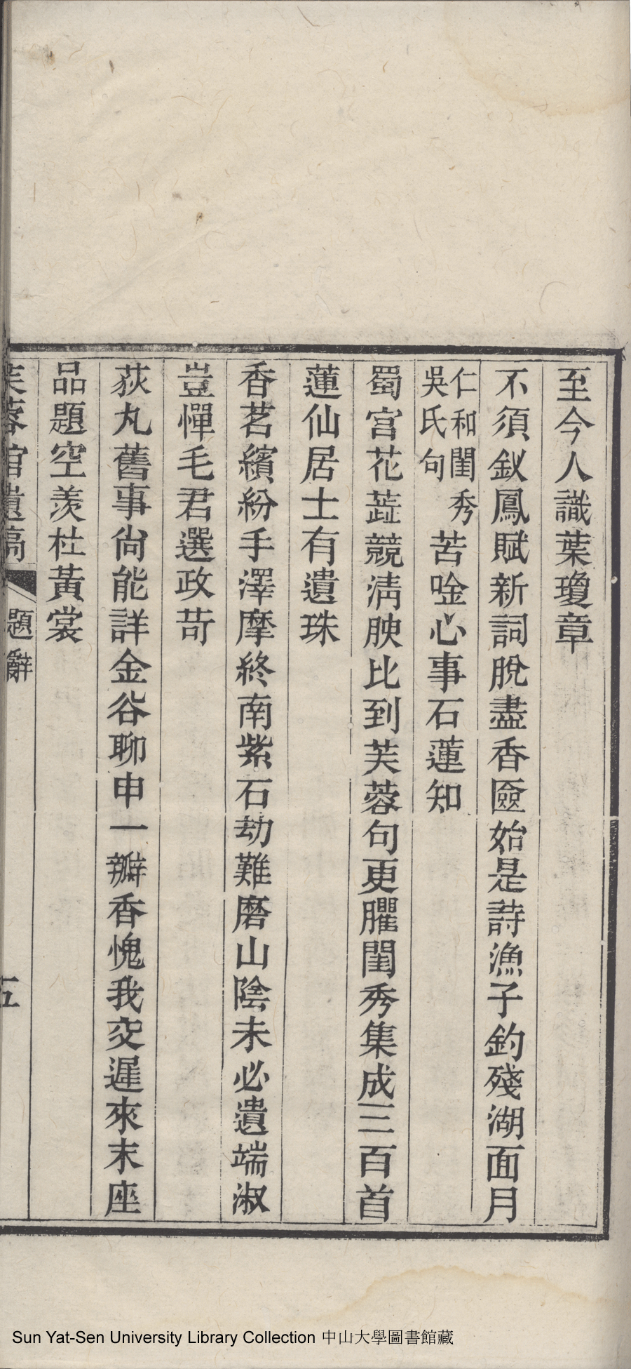 | 原書: 芙蓉館遺稿:一卷(清史印玉撰) |