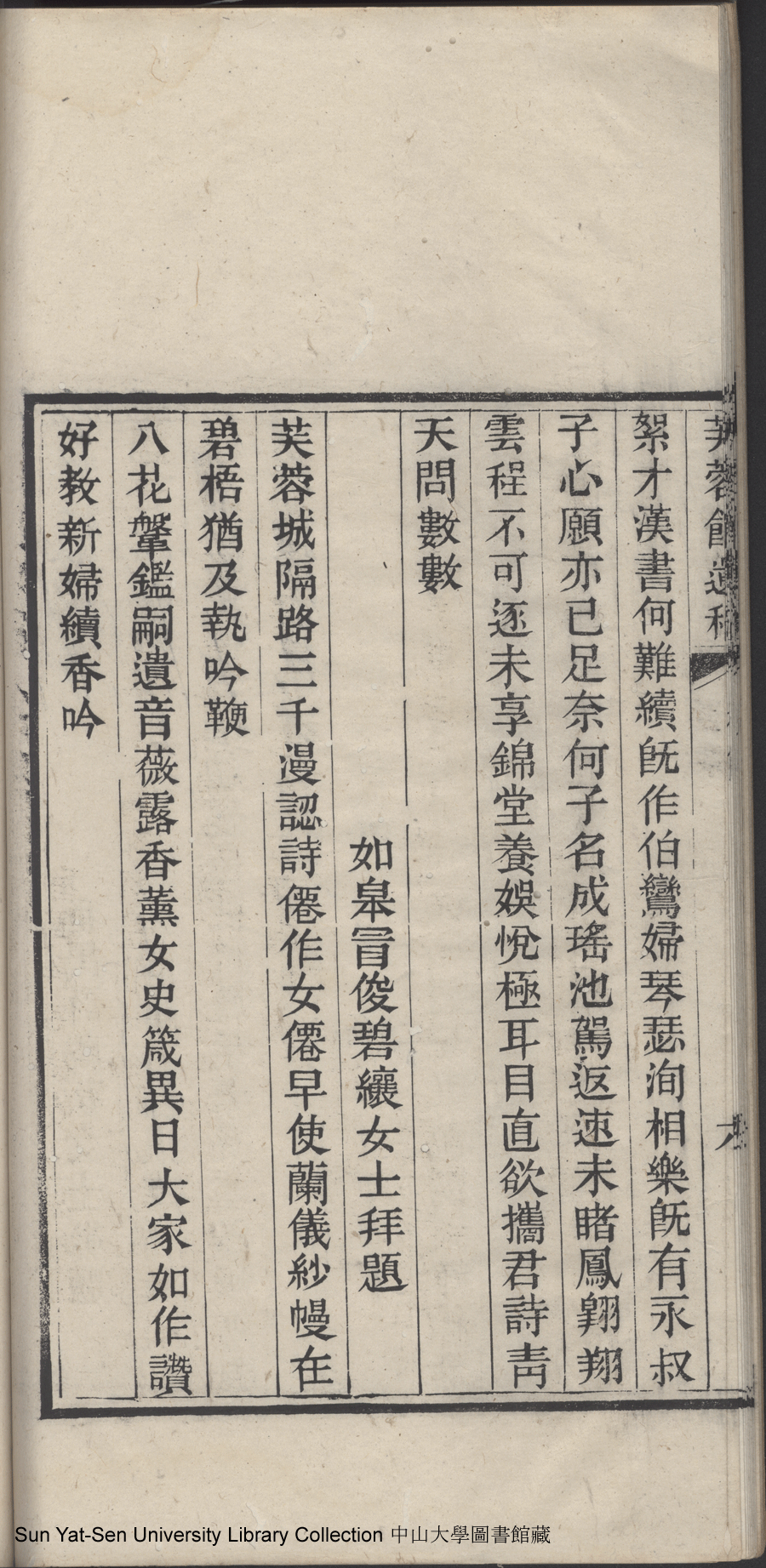 | 原書: 芙蓉館遺稿:一卷(清史印玉撰) |