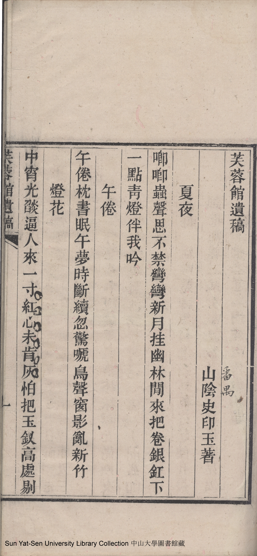 | 原書: 芙蓉館遺稿:一卷(清史印玉撰) |