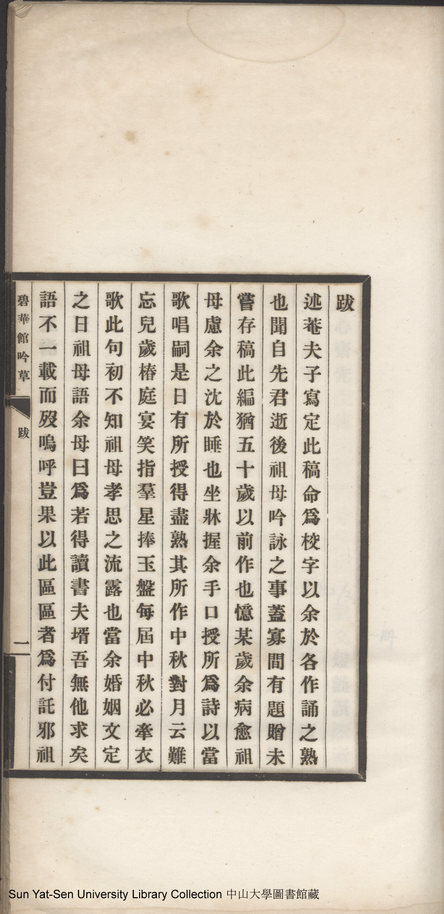 | (PRINT FRIENDLY VERSION) 碧華館吟草:一卷 (清殷如琳撰)。1932年排印本 ![]() 頁碼 : 跋.1b | 点 击 放 大 | 碧華館吟草:一卷 (清殷如琳撰)。1932年排印本![]() 頁碼 : 跋.1a | 点 击 放 大 | 返回 |