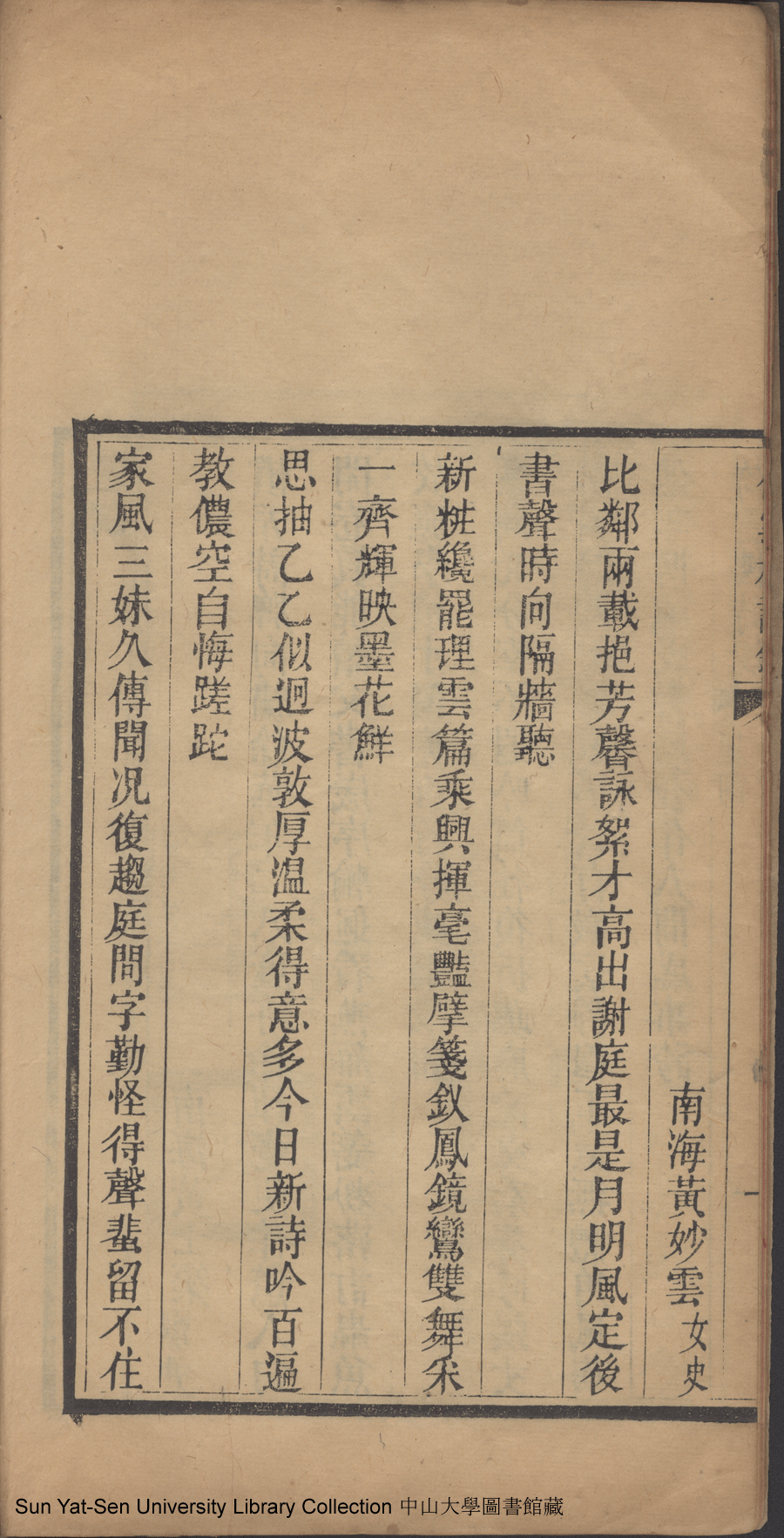 | (PRINT FRIENDLY VERSION) 倚雲樓詩鈔:一卷(清劉月娟撰)。民國元年(1912)刻本 ![]() 頁碼 : 題詞2a | 点 击 放 大 | 倚雲樓詩鈔:一卷(清劉月娟撰)。民國元年(1912)刻本![]() 頁碼 : 題詞1b | 点 击 放 大 | 返回 |