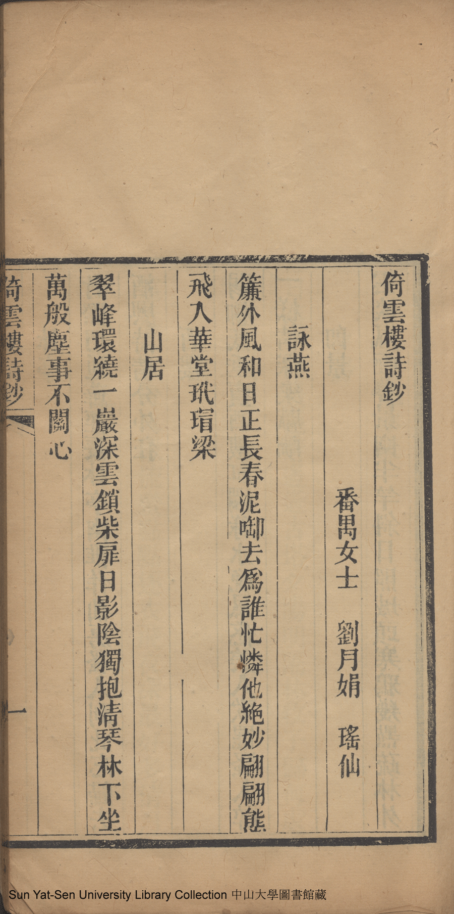 | 原書: 倚雲樓詩鈔:一卷(清劉月娟撰) |