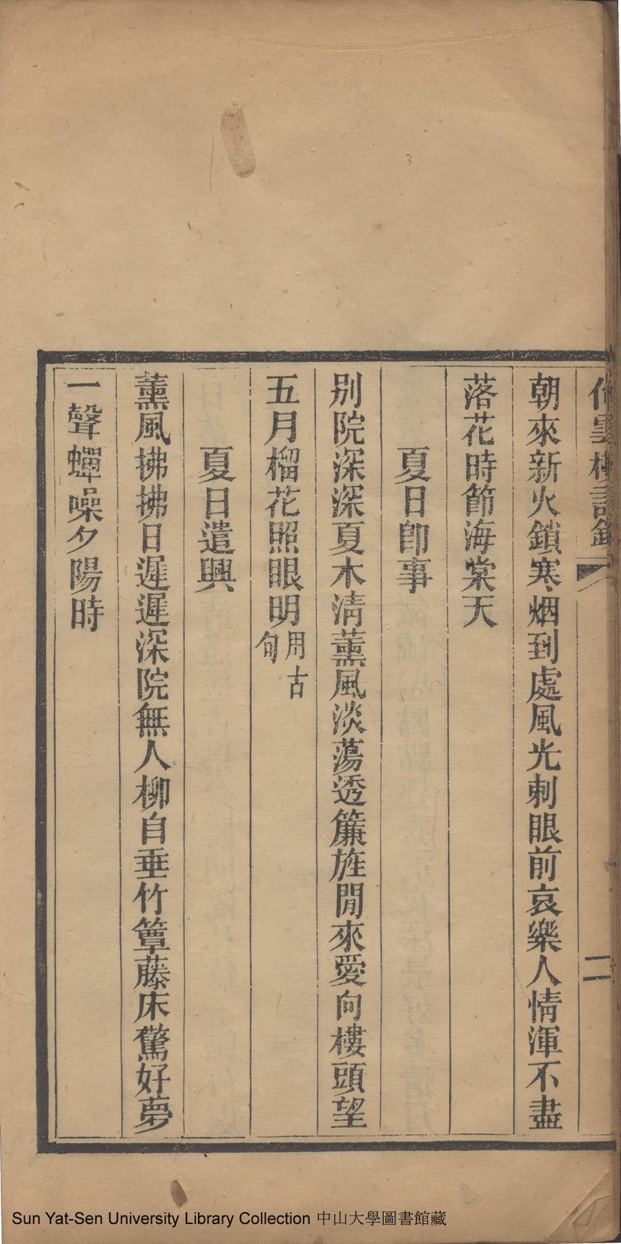 | (PRINT FRIENDLY VERSION) 倚雲樓詩鈔:一卷(清劉月娟撰)。民國元年(1912)刻本 ![]() 頁碼 : 詩鈔2b | 点 击 放 大 | 返回 |