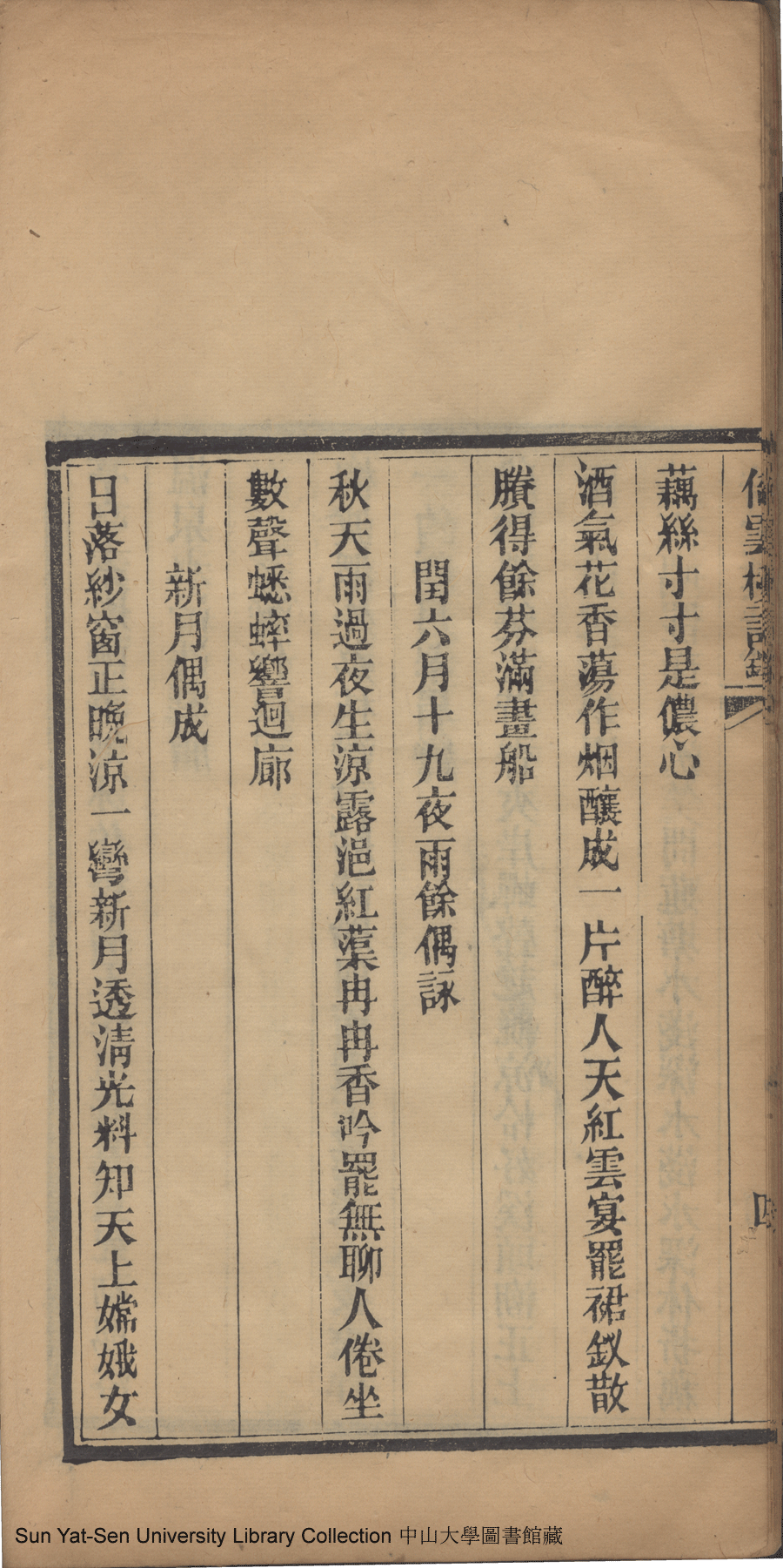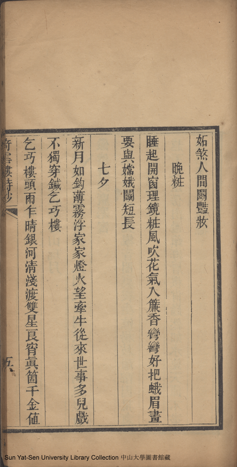 | (PRINT FRIENDLY VERSION) 倚雲樓詩鈔:一卷(清劉月娟撰)。民國元年(1912)刻本 ![]() 頁碼 : 詩鈔5a | 点 击 放 大 | 倚雲樓詩鈔:一卷(清劉月娟撰)。民國元年(1912)刻本![]() 頁碼 : 詩鈔4b | 点 击 放 大 | 返回 |