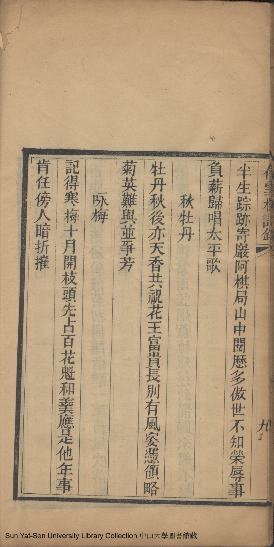 | (PRINT FRIENDLY VERSION) 倚雲樓詩鈔:一卷(清劉月娟撰)。民國元年(1912)刻本 ![]() 頁碼 : 詩鈔9b | 点 击 放 大 | 返回 |