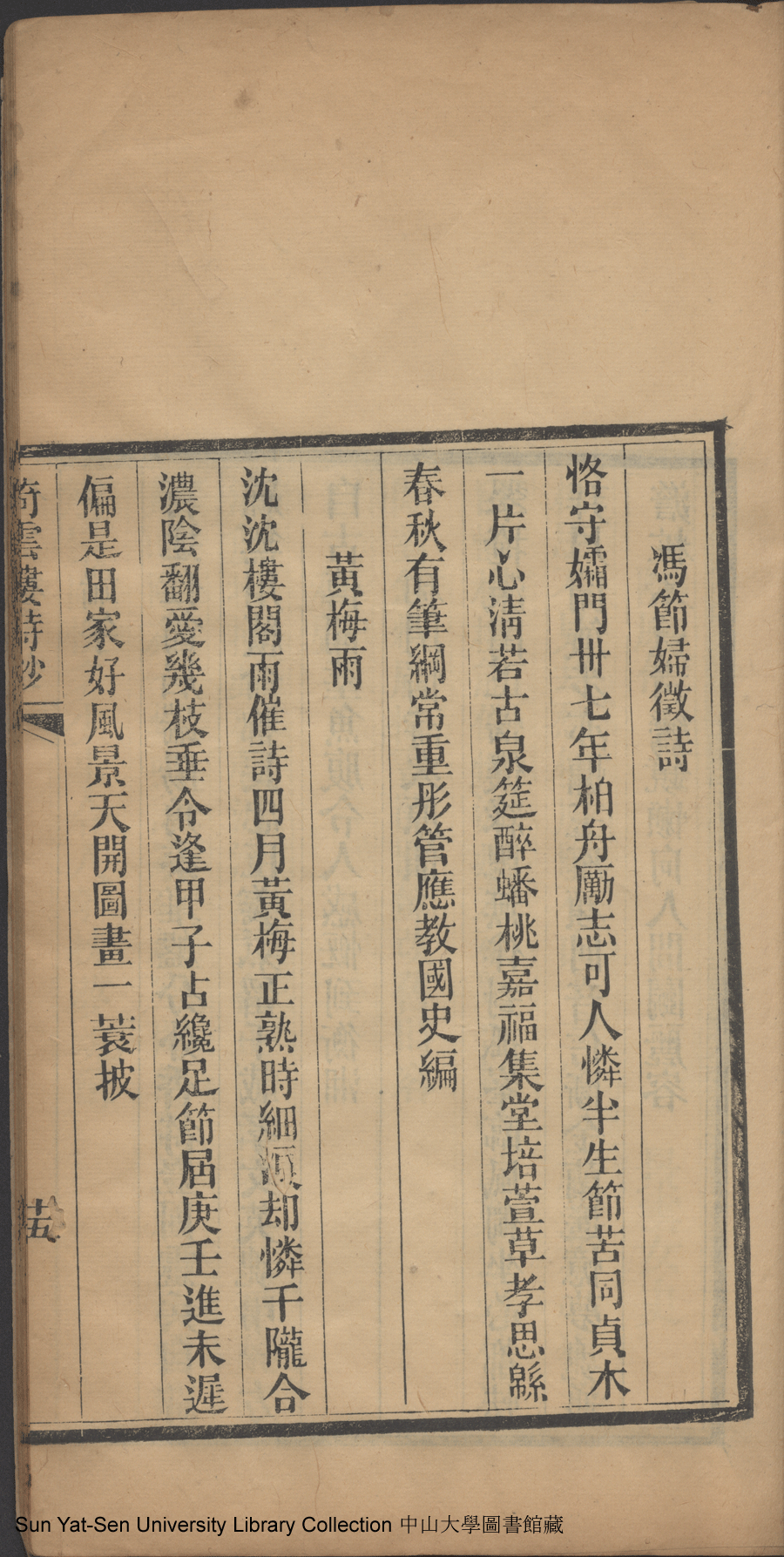 | (PRINT FRIENDLY VERSION) 倚雲樓詩鈔:一卷(清劉月娟撰)。民國元年(1912)刻本 ![]() 頁碼 : 詩鈔15a | 点 击 放 大 | 返回 |