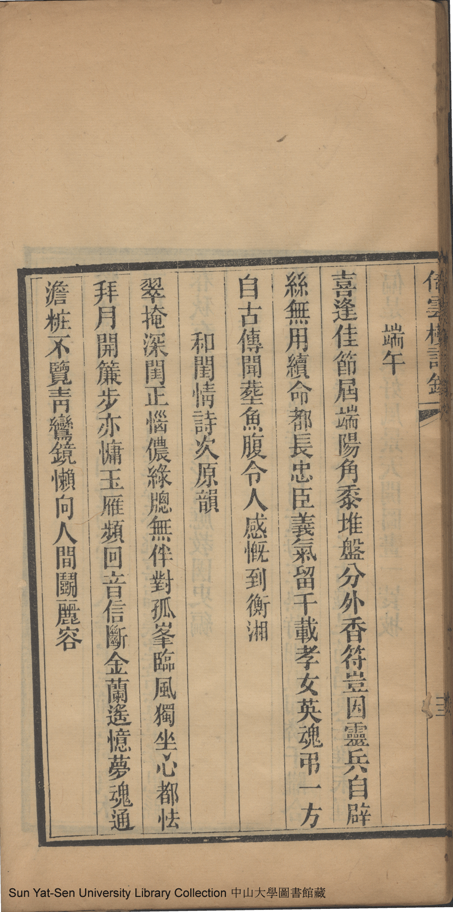 | (PRINT FRIENDLY VERSION) 倚雲樓詩鈔:一卷(清劉月娟撰)。民國元年(1912)刻本 ![]() 頁碼 : 詩鈔15b | 点 击 放 大 | 返回 |