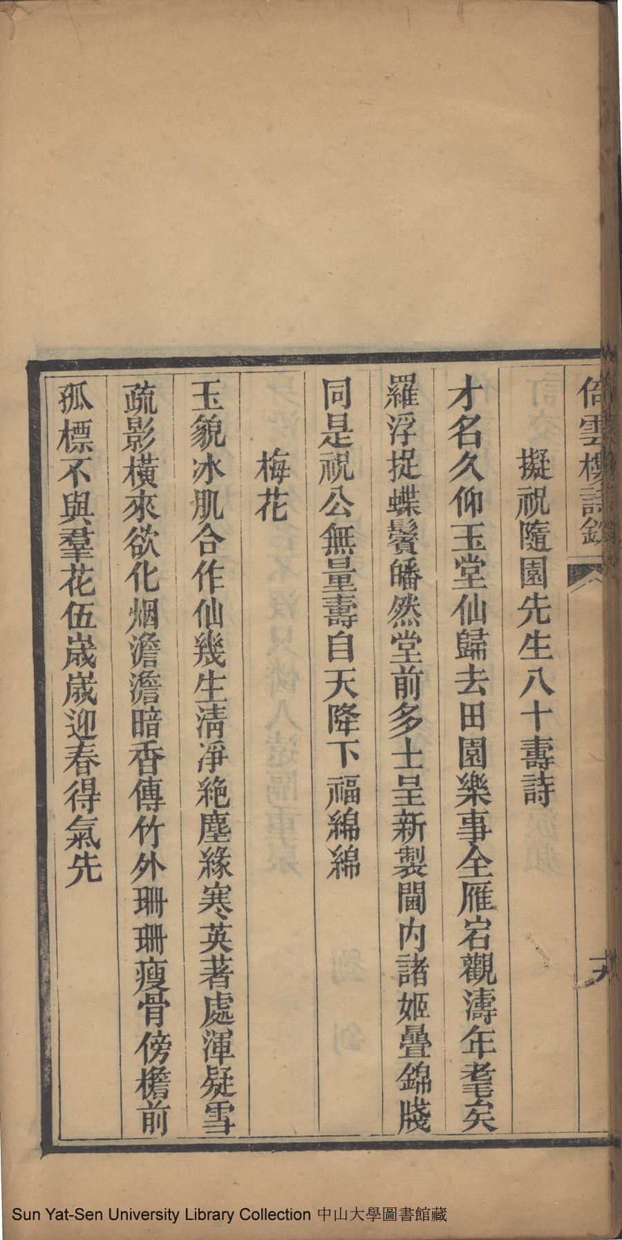 | (PRINT FRIENDLY VERSION) 倚雲樓詩鈔:一卷(清劉月娟撰)。民國元年(1912)刻本 ![]() 頁碼 : 詩鈔19b | 点 击 放 大 | 返回 |