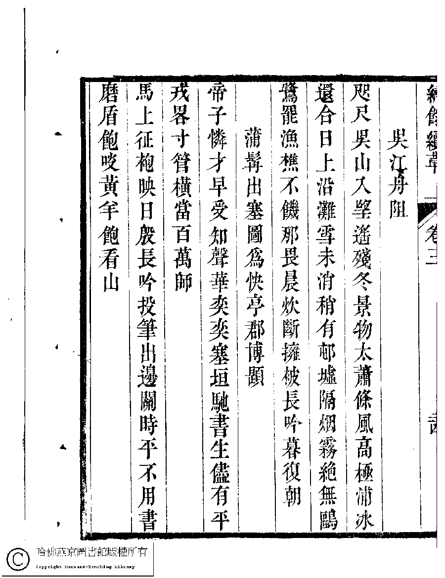 | (PRINT FRIENDLY VERSION) 繡餘續草﹕五卷(清歸懋儀撰)。清道光十二年 (1832)刻本 ![]() 頁碼 : 3.24b | 点 击 放 大 | 返回 |