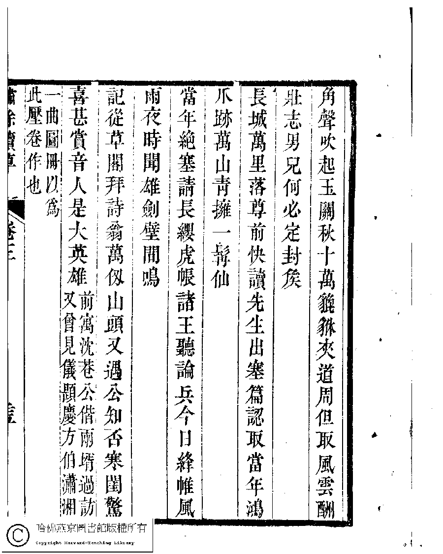 | (PRINT FRIENDLY VERSION) 繡餘續草﹕五卷(清歸懋儀撰)。清道光十二年 (1832)刻本 ![]() 頁碼 : 3.25a | 点 击 放 大 | 繡餘續草﹕五卷(清歸懋儀撰)。清道光十二年 (1832)刻本![]() 頁碼 : 3.24b | 点 击 放 大 | 返回 |