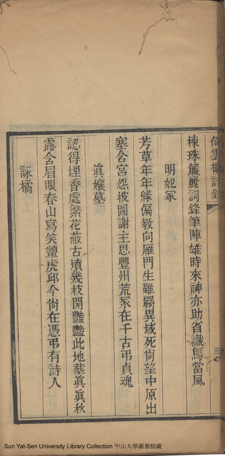 | (PRINT FRIENDLY VERSION) 倚雲樓詩鈔:一卷(清劉月娟撰)。民國元年(1912)刻本 ![]() 頁碼 : 詩鈔25a | 点 击 放 大 | 倚雲樓詩鈔:一卷(清劉月娟撰)。民國元年(1912)刻本![]() 頁碼 : 詩鈔24b | 点 击 放 大 | 返回 |