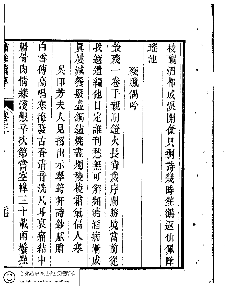 | (PRINT FRIENDLY VERSION) 繡餘續草﹕五卷(清歸懋儀撰)。清道光十二年 (1832)刻本 ![]() 頁碼 : 3.27a | 点 击 放 大 | 返回 |